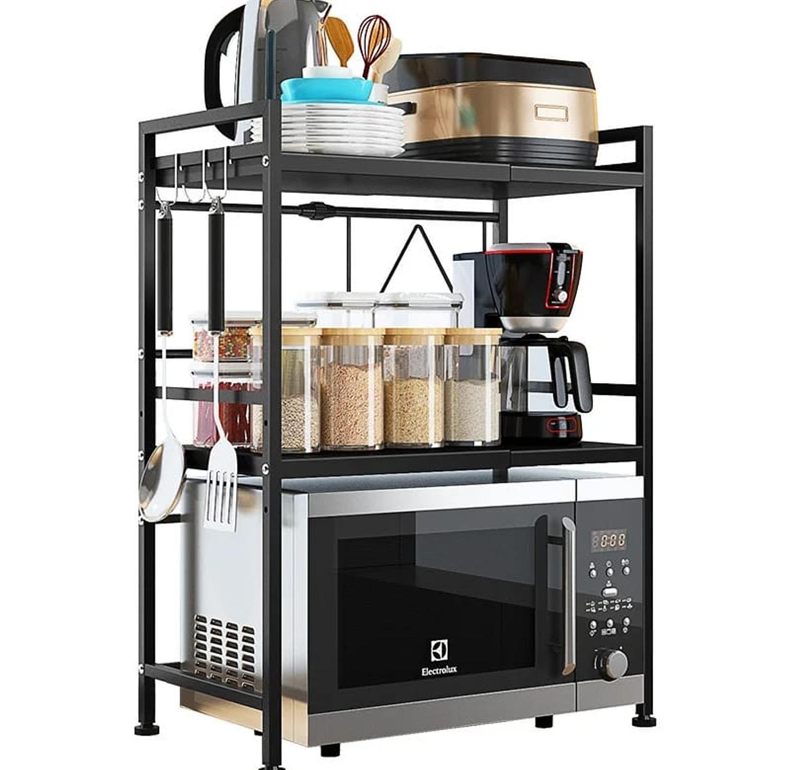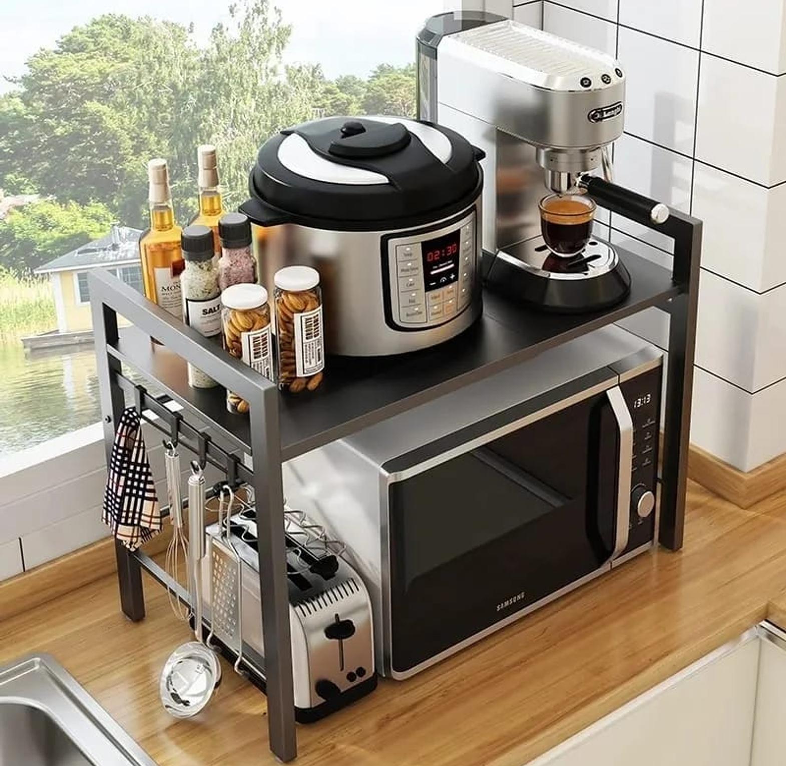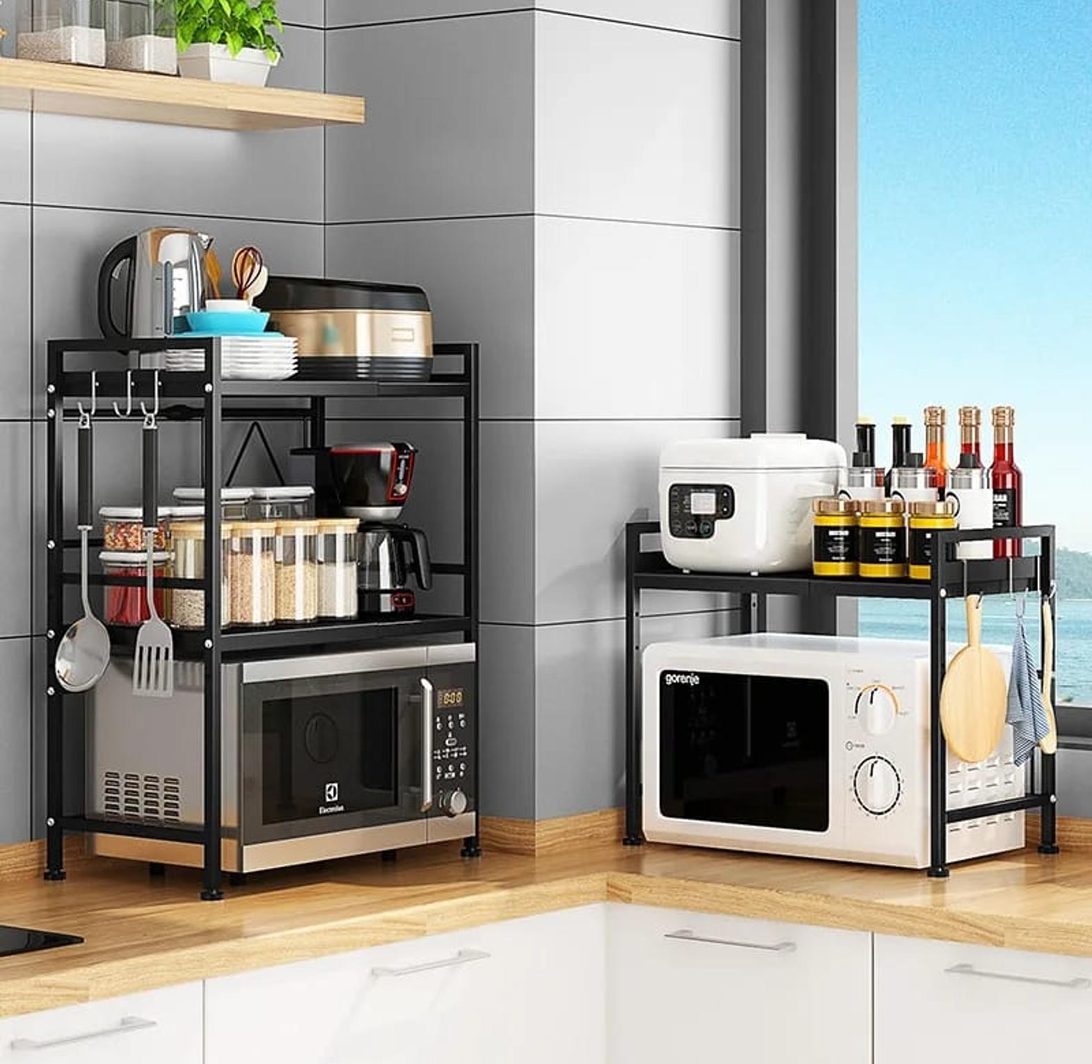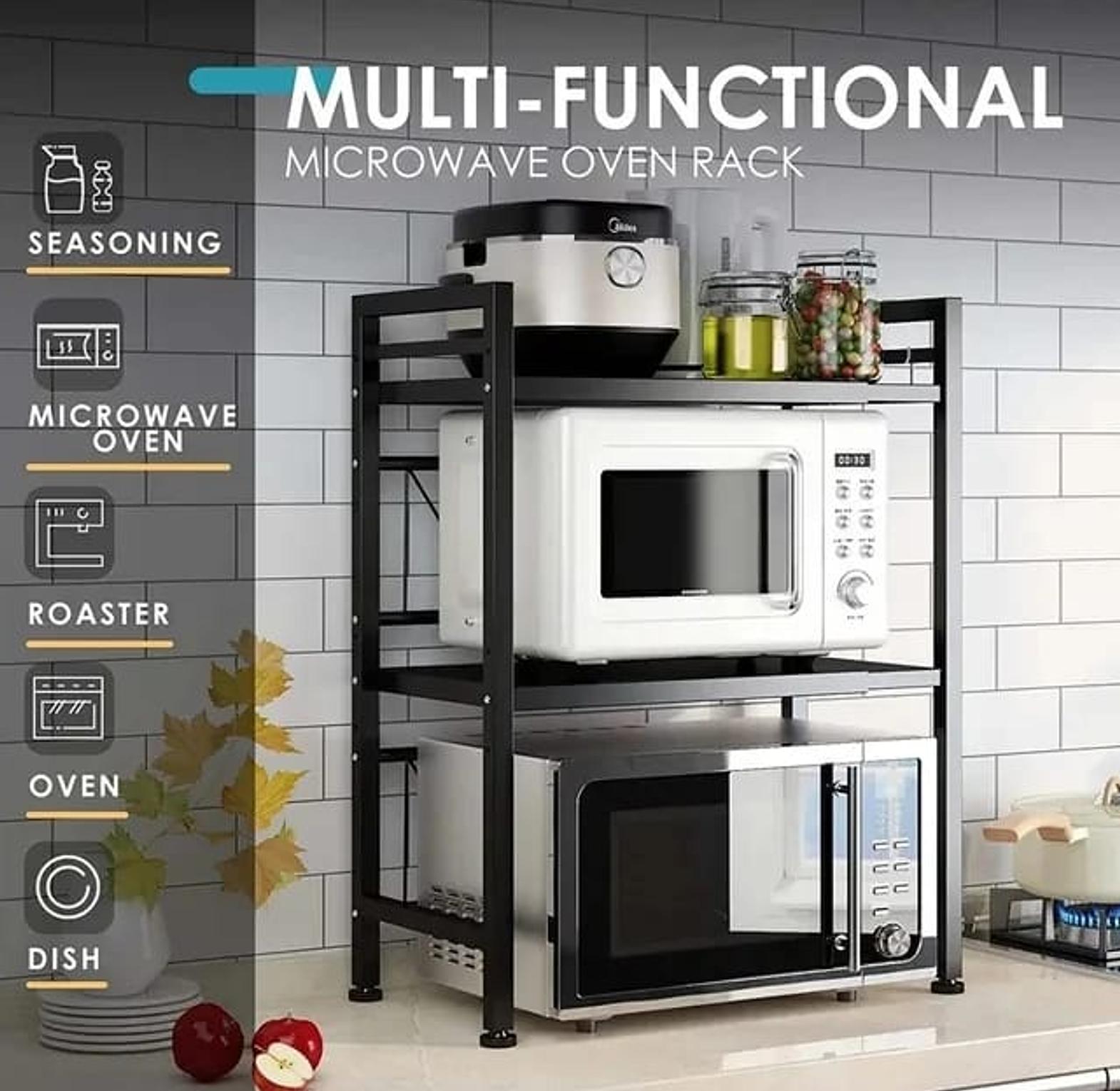 Heavy-duty 2Tier Telescopic Adjustable Microwave stand ☑️Colour . Black ☑️Size. 40~60*32*78cm ☑️Rust free