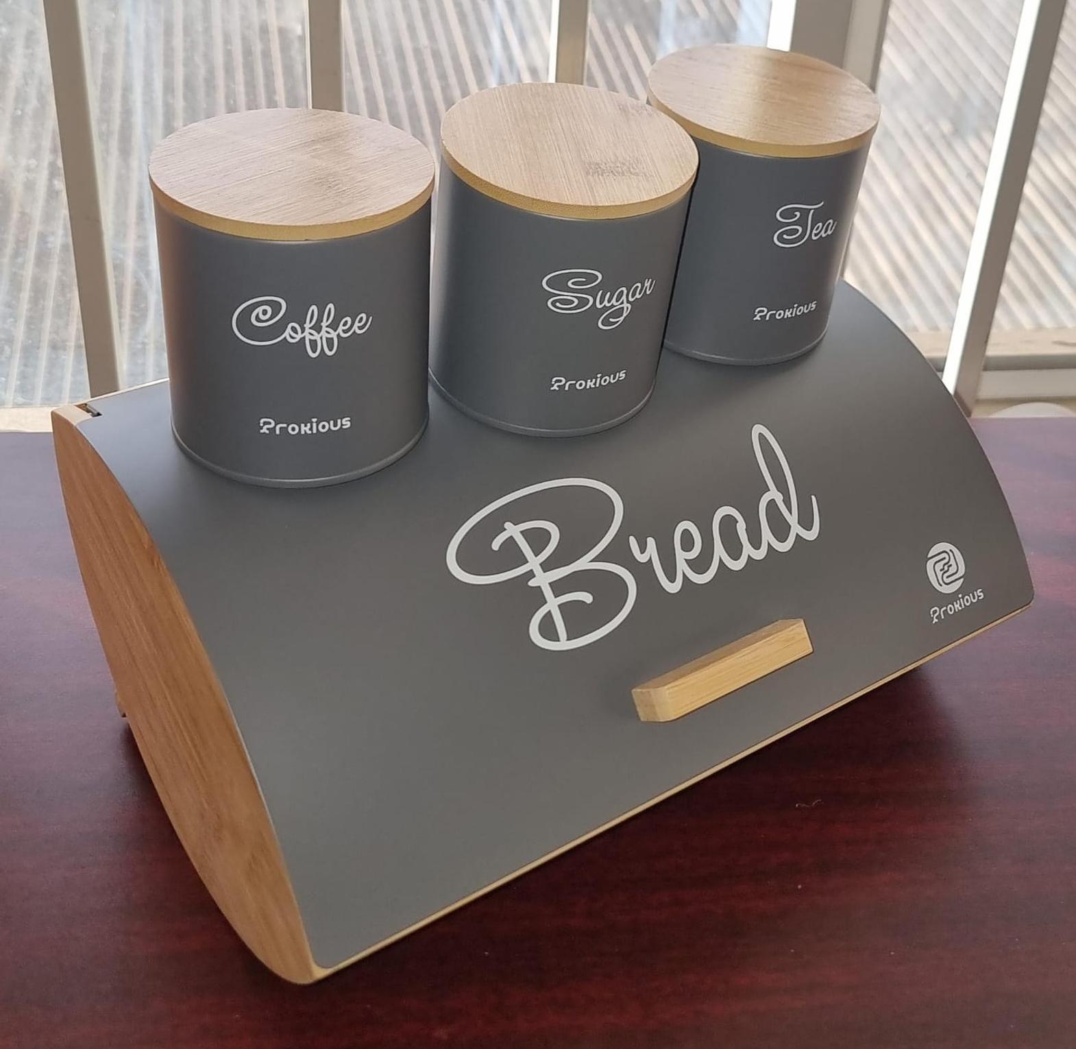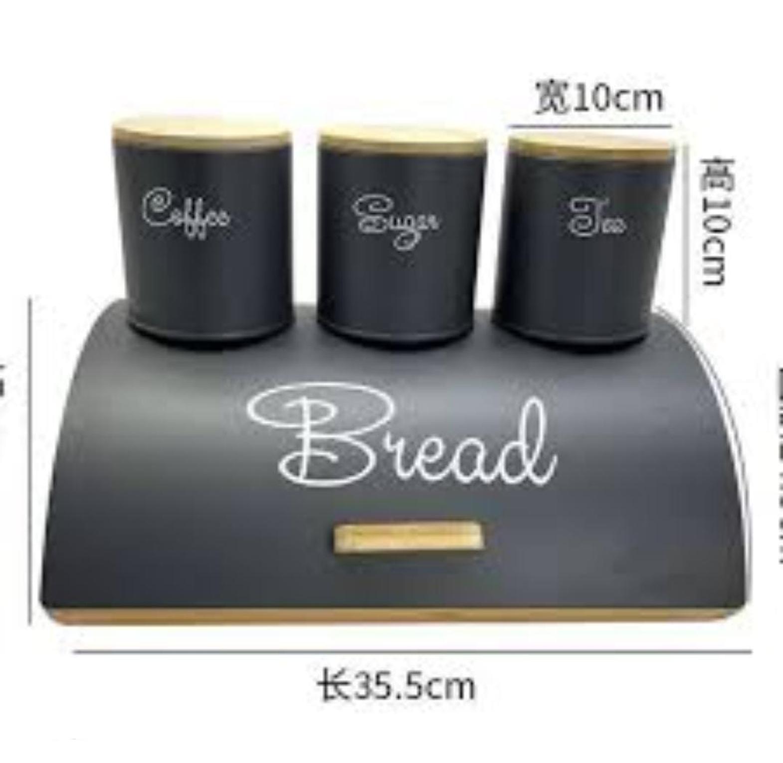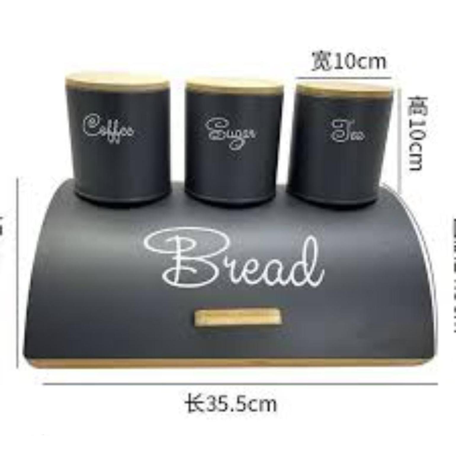35cmx25cm hemisphere bamboo bread bin plus 3x600ml coffee sugar tea canisters bamboo lid now available in colour black and grey
