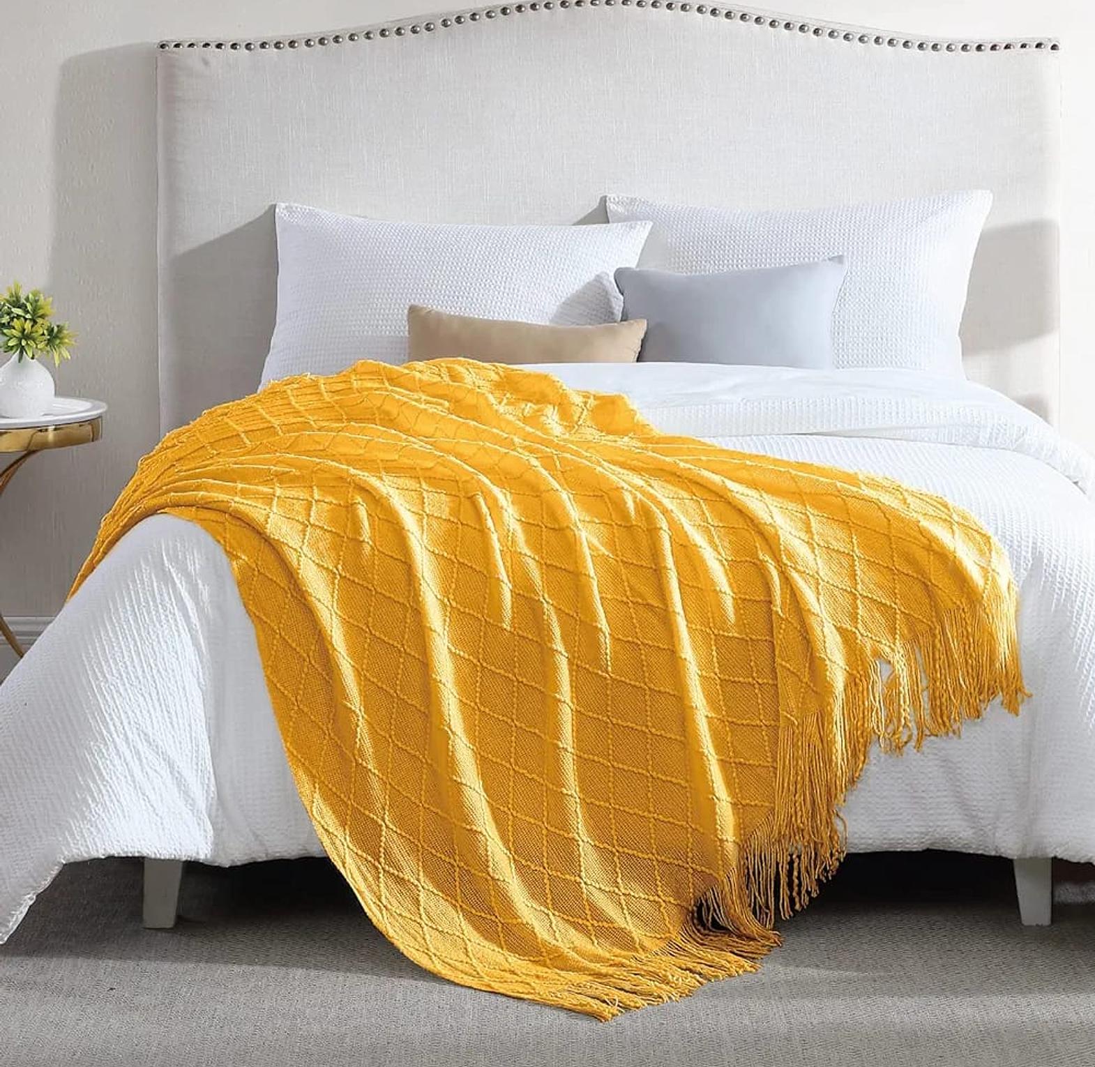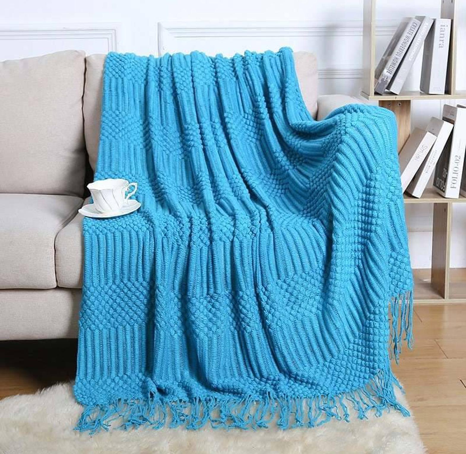 High quality Knitted throw blankets with tassel ▫️ ➖ Material: Acrylic Cashmere ➖ Decorative Sofa or bed throw ➖Jacquard knitted blankets/shawl ➖Size 130*180cm