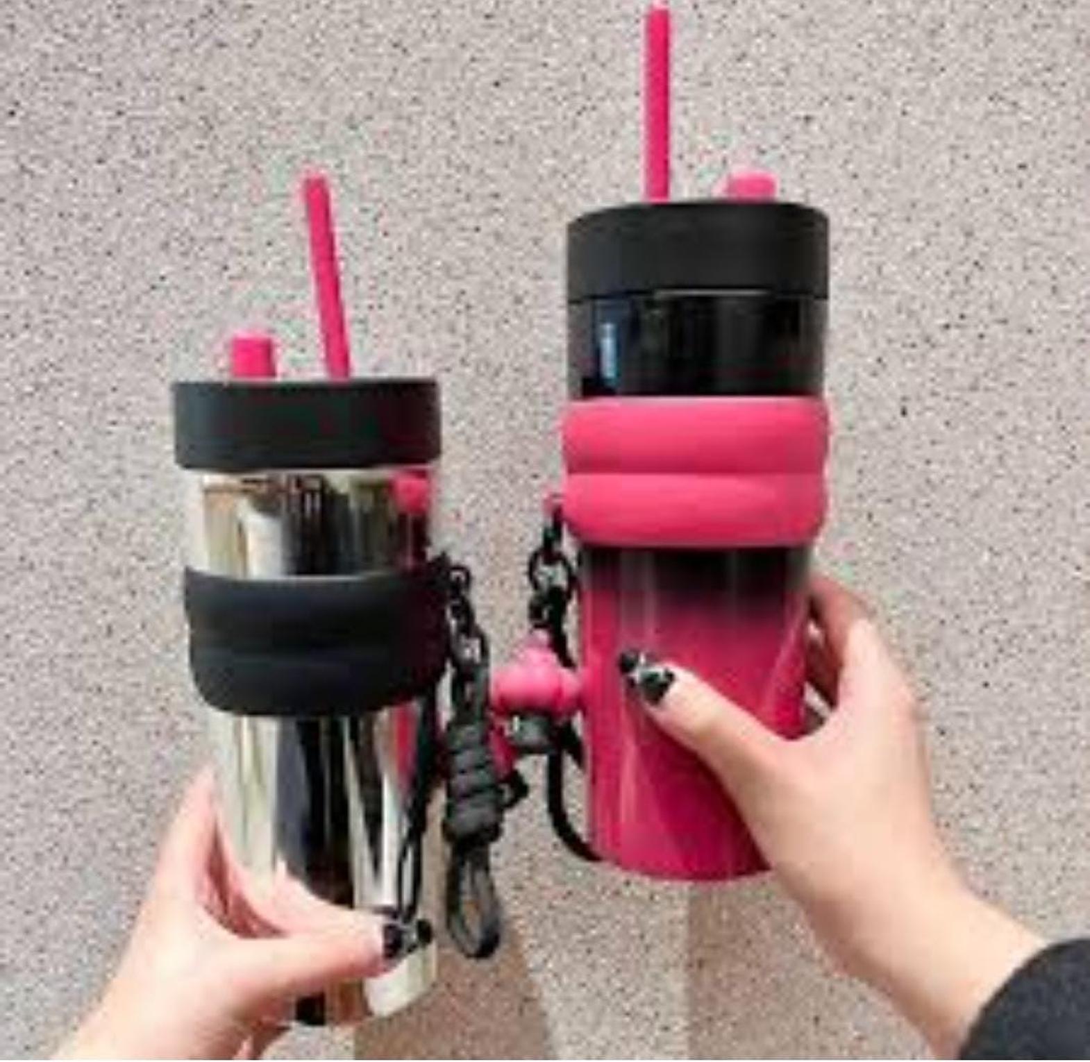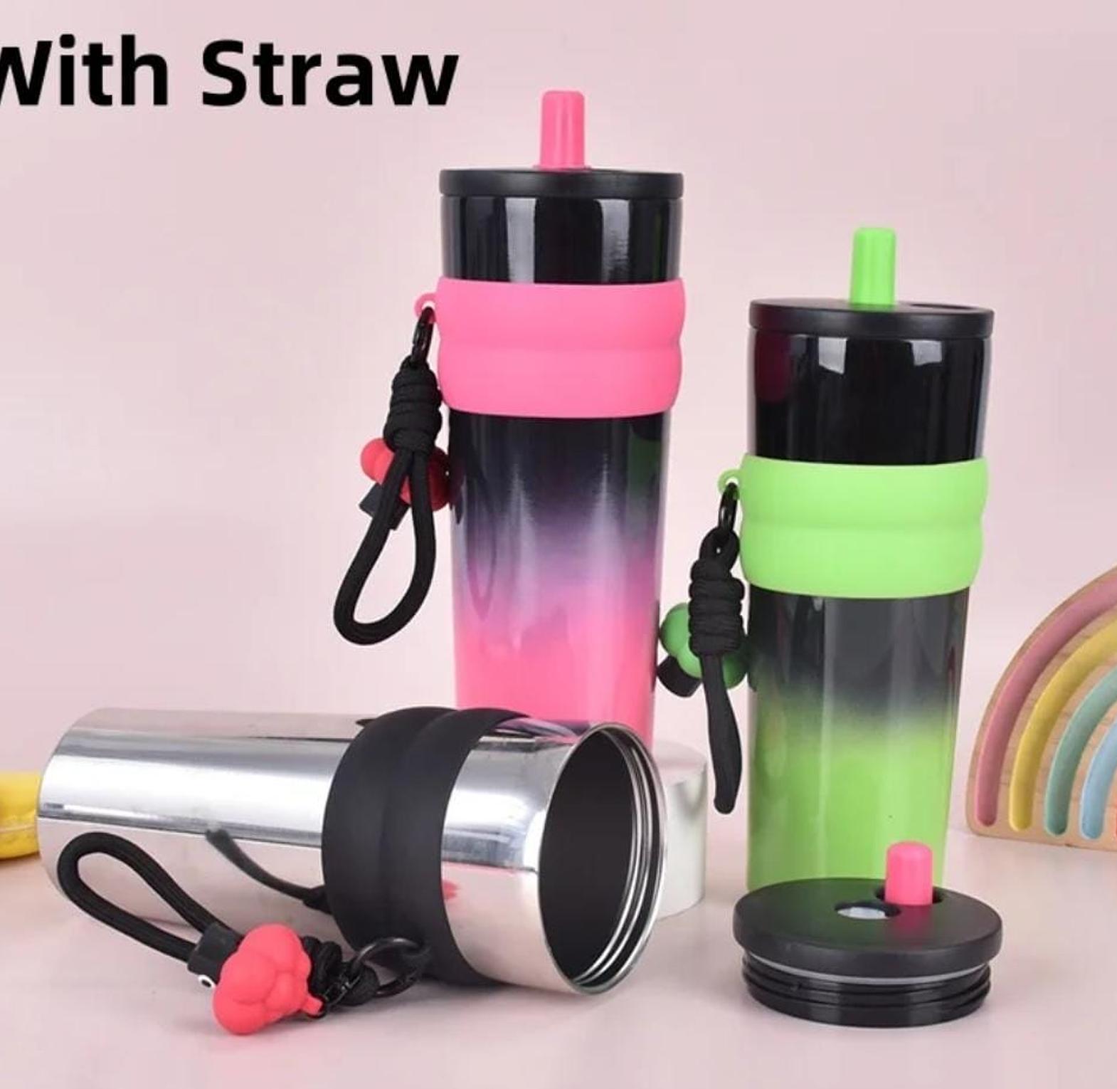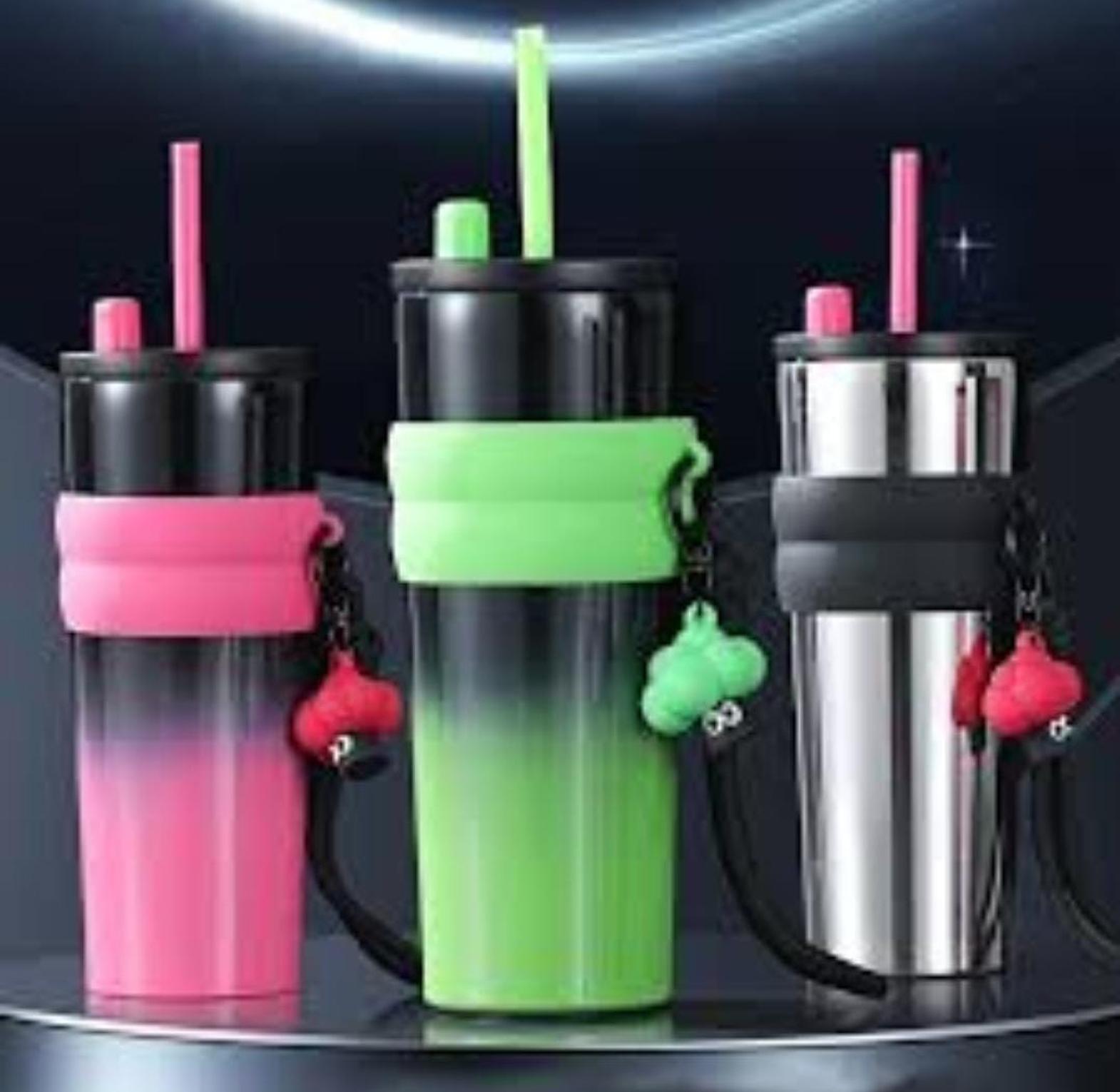 High quality unique thermcups with straw Capacity 710mls Available in 3colours pink,silver and green