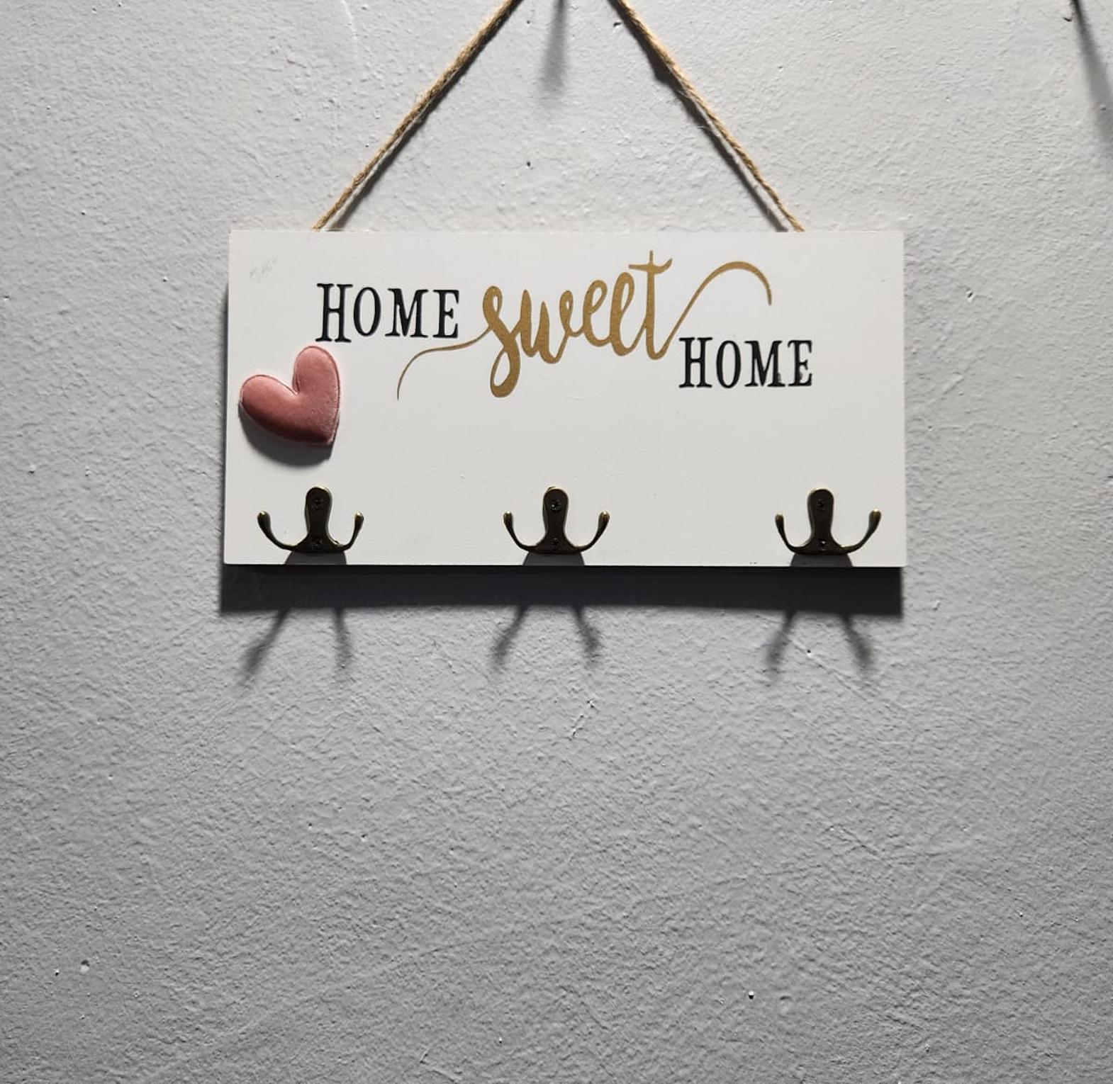 Home sweet home 3 hook key holder wooden kitchen wall hanging hook key holder wooden