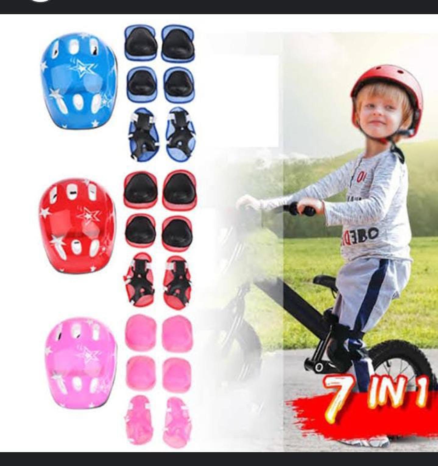 kids helmet /guards set ✅includes one helmet 6pack guards ✅color available Blue, pink and Red