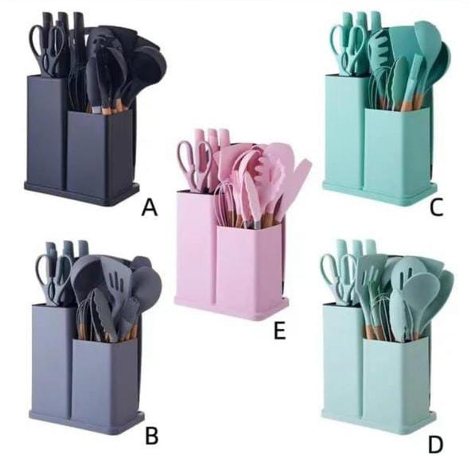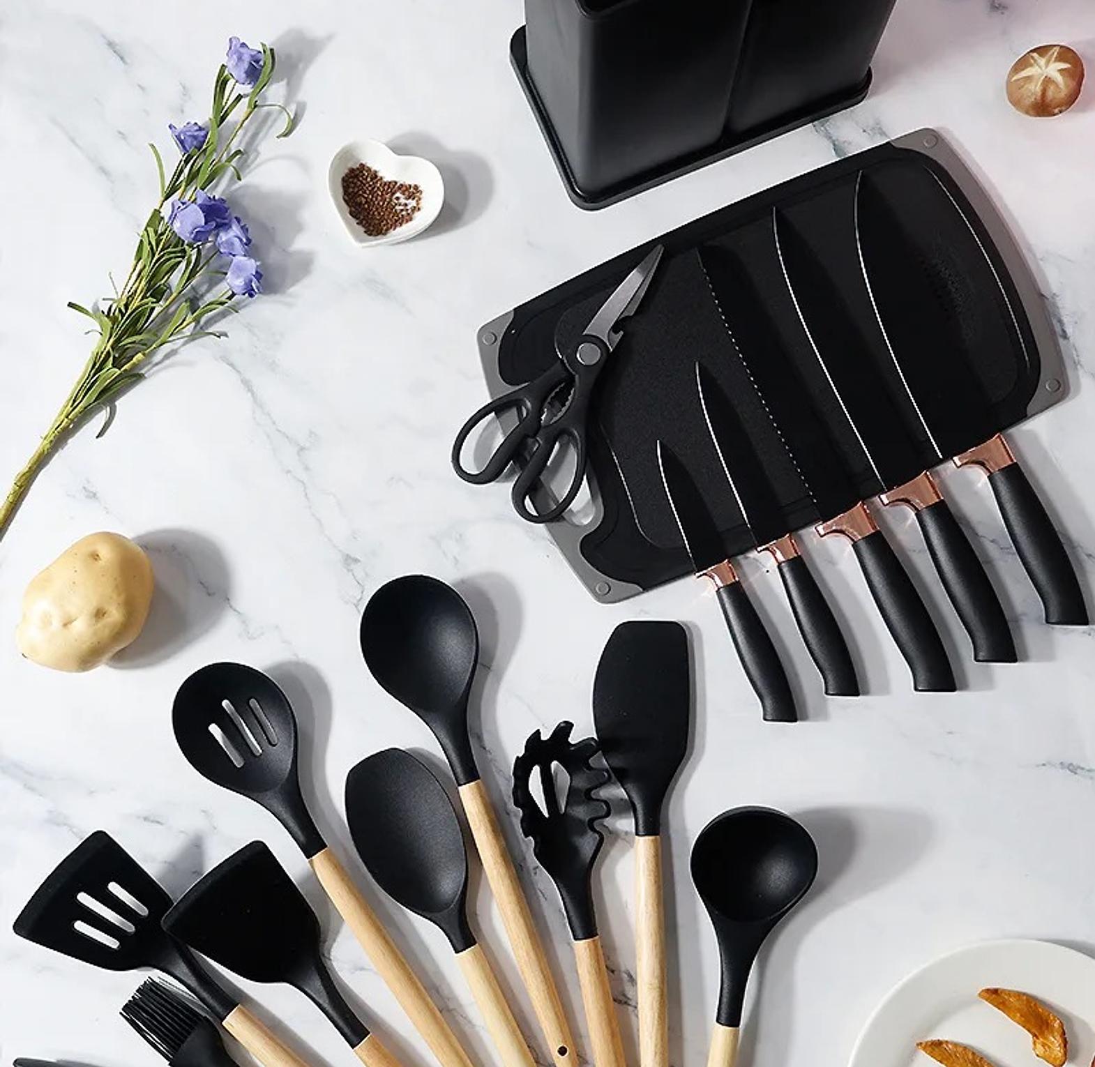 Kitchen cooking set ✅Comes with silicon spoon set,,5pcs of knife sets with kitchen scissors ,, chopping board and the tin