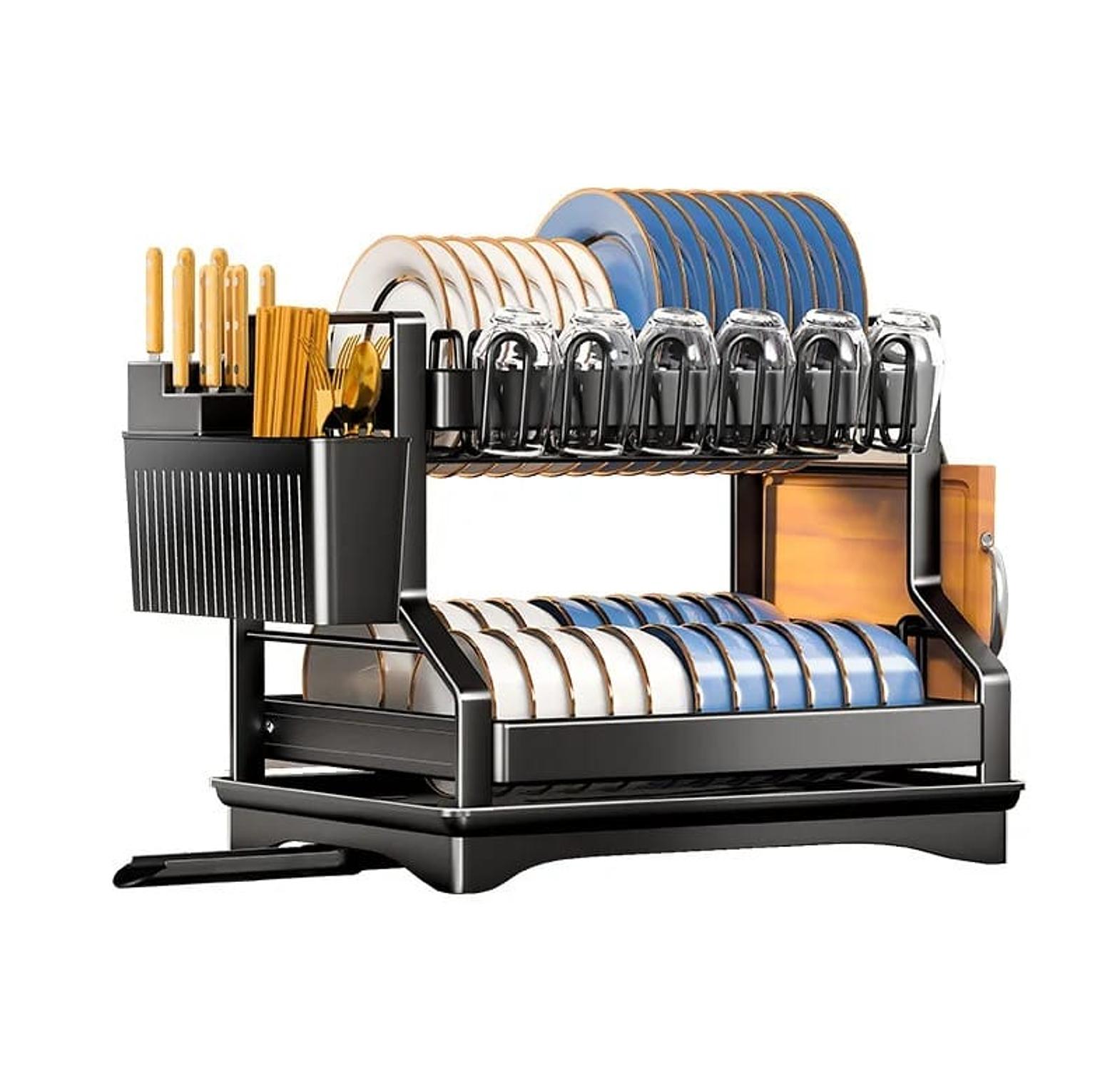 Made of high quality metal with black powder coated surface. Easy to clean and stable, this kitchen utensil rack is a reliable metal drying rack choice for every family,