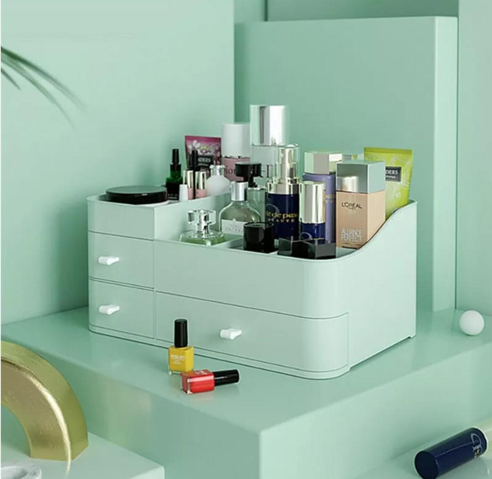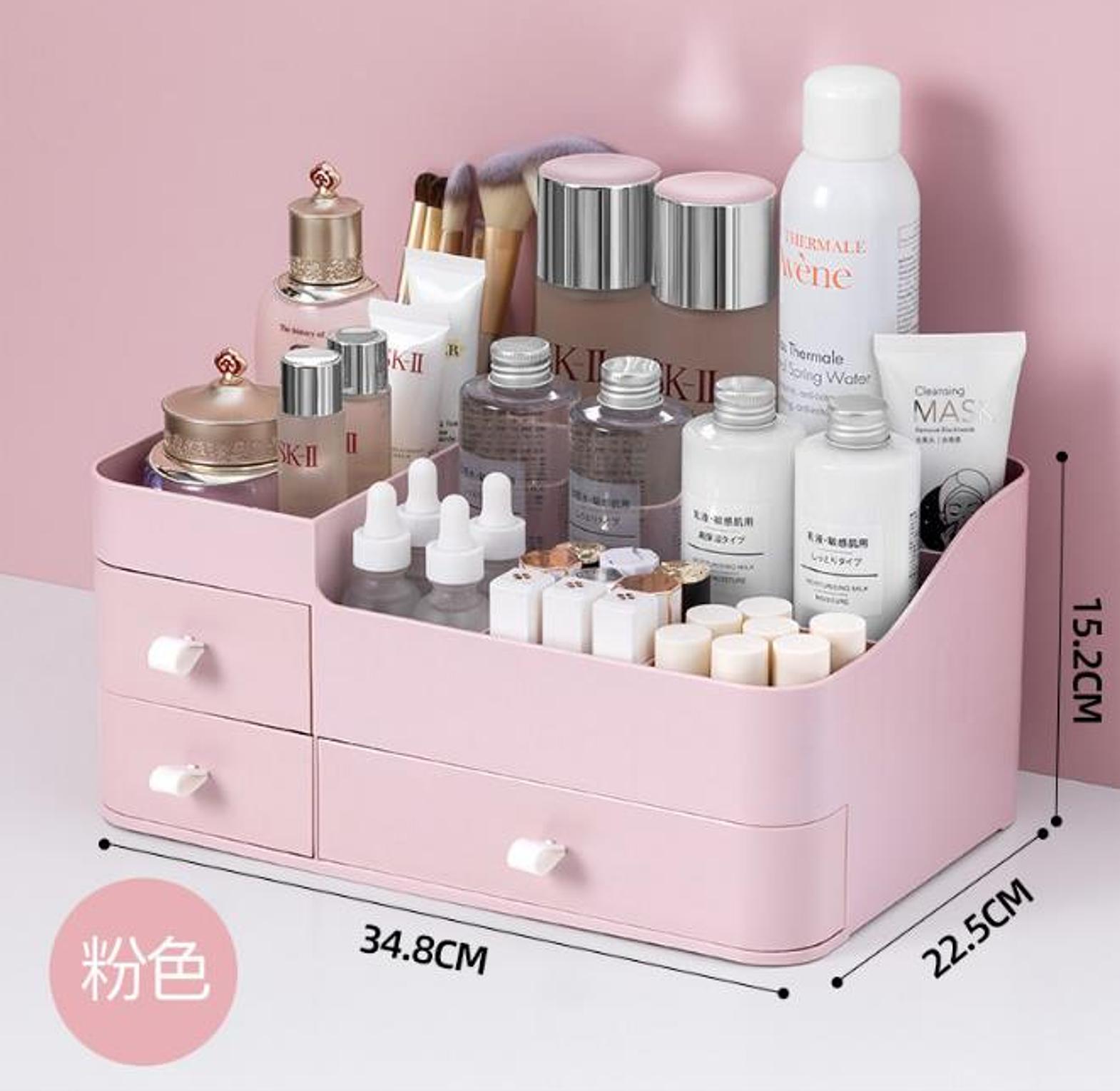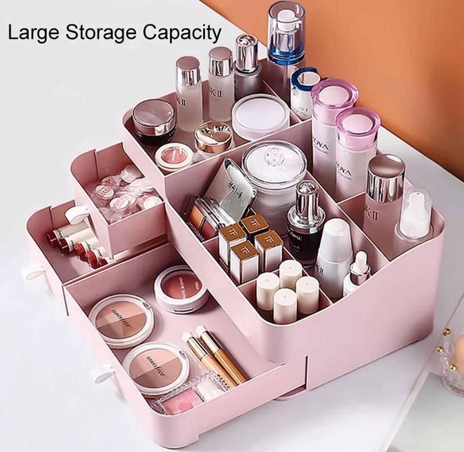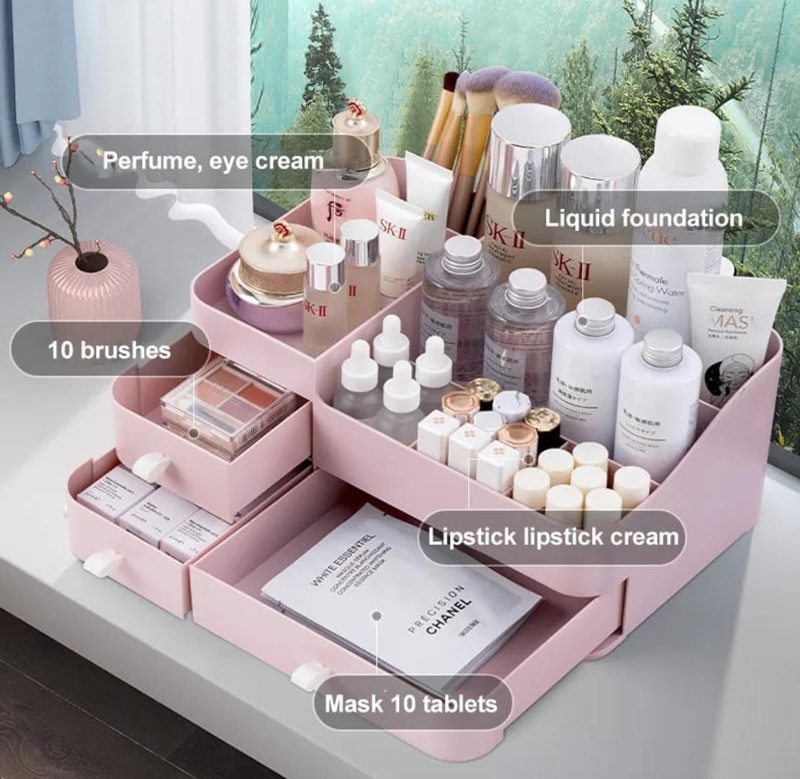 Large capacity plastic make up organizer the drawers can be opened to increase storage