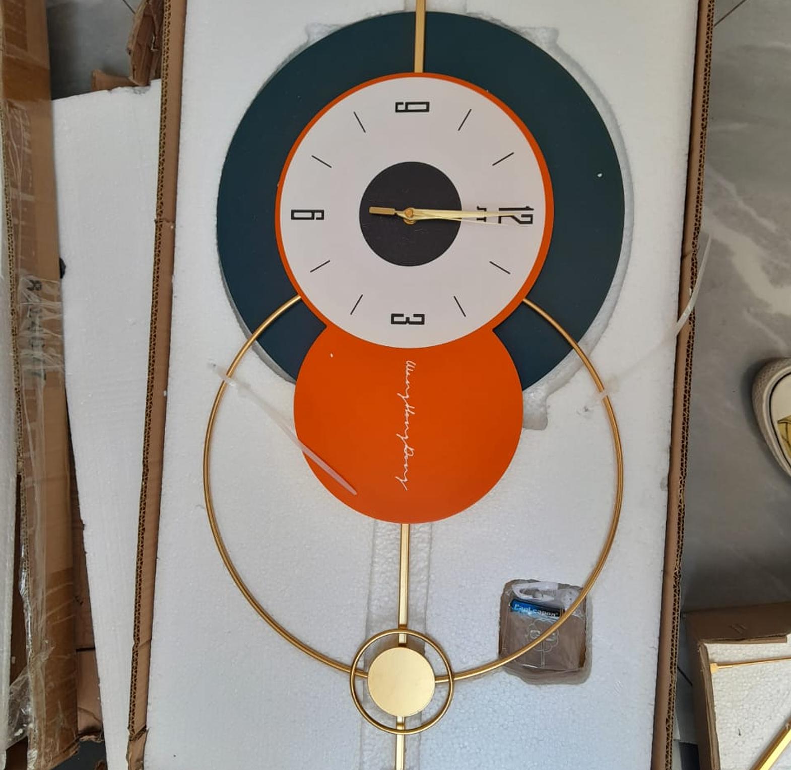 Large wall clock ✅code CHS -10-9-orange ✅Decorative Wall ornament ✅Suitable for living room, Office, ✅Measurements 30*70 cms ✅Power: battery AA ( included)