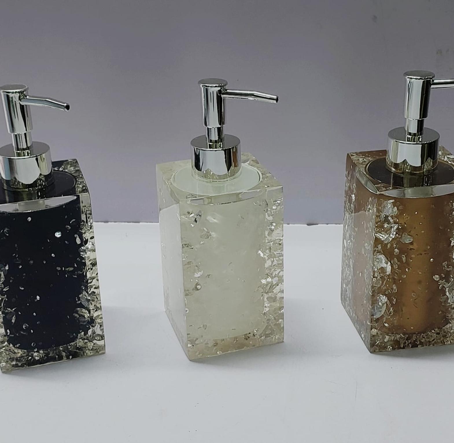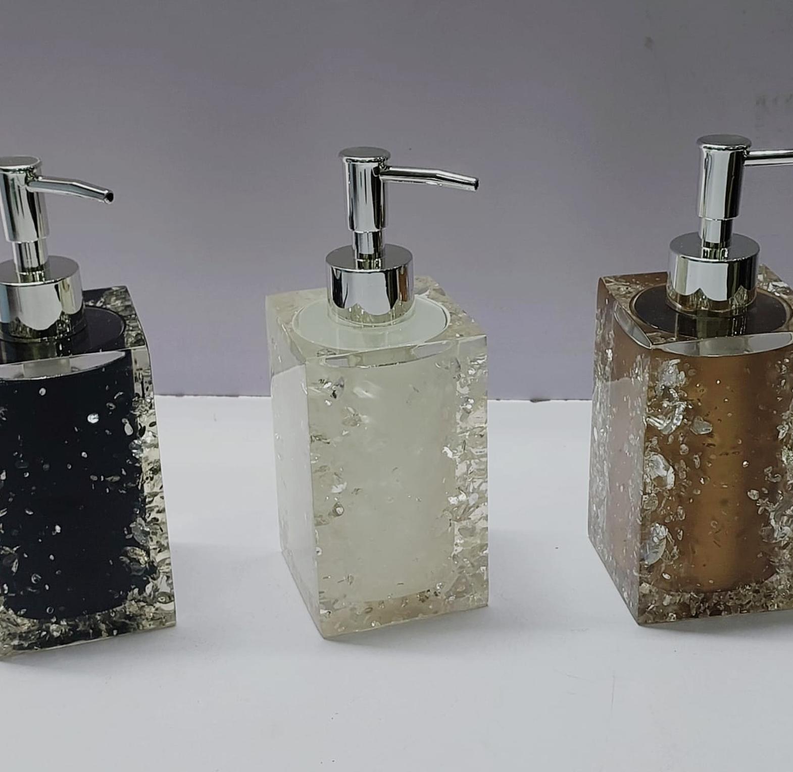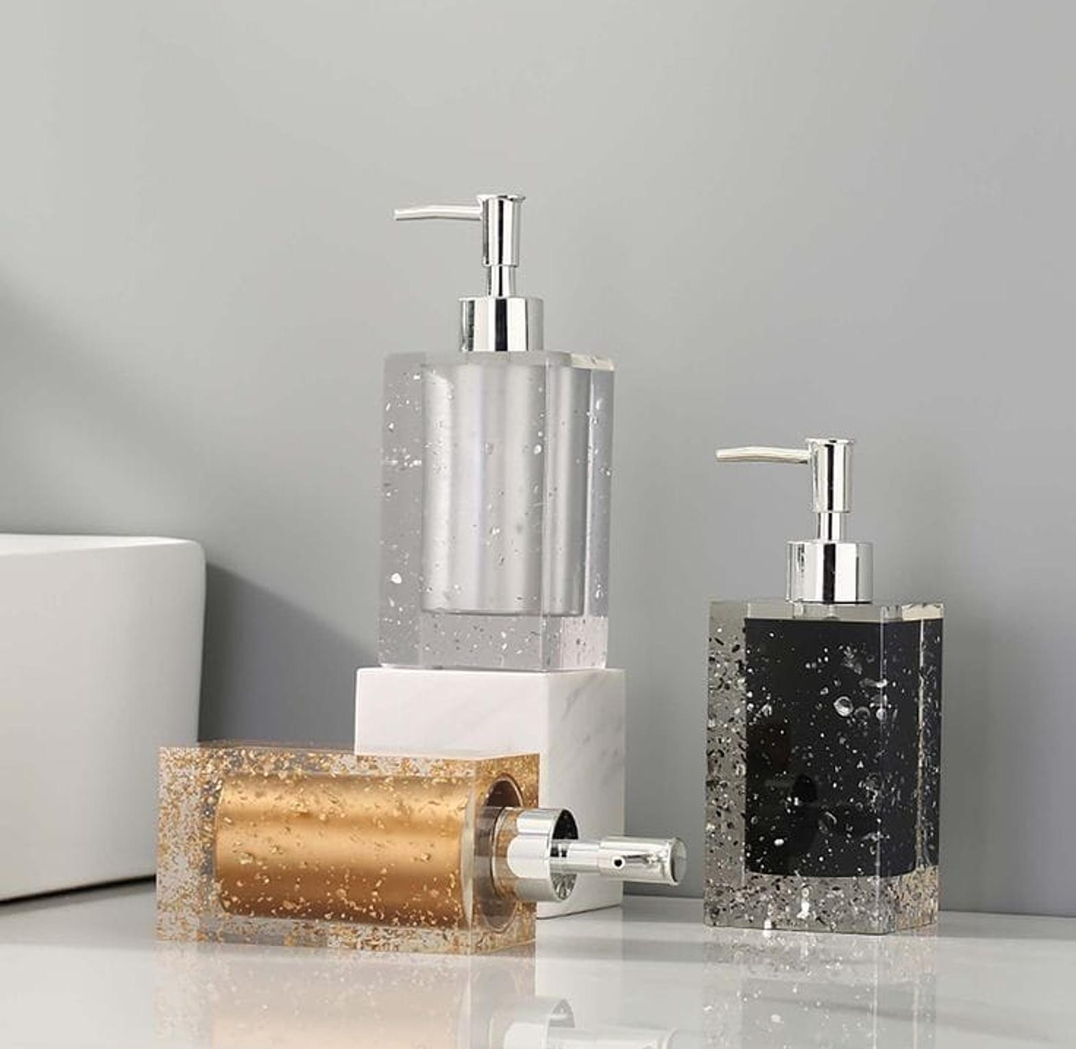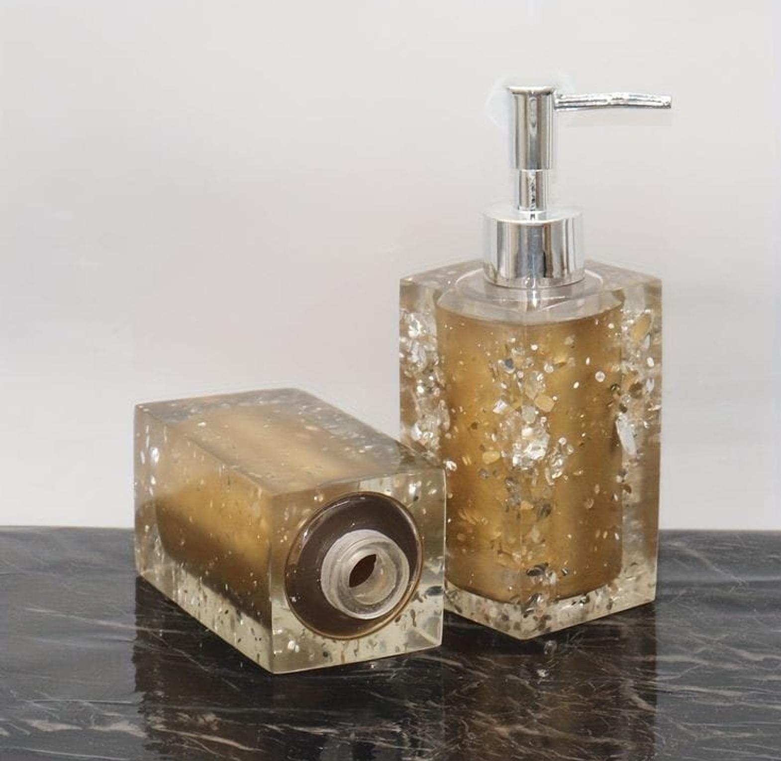 Our unique Luminous bath accessory collection is formed by thousands of stones that are encased inside of a polished, translucent resin casing which is smooth to the touch, and allows light to reflect off of the encased rhinestones casting a brilliant shine. Use to dispense liquid hand soap, lotion, shampoo, conditioner, or even body or massage oil.
