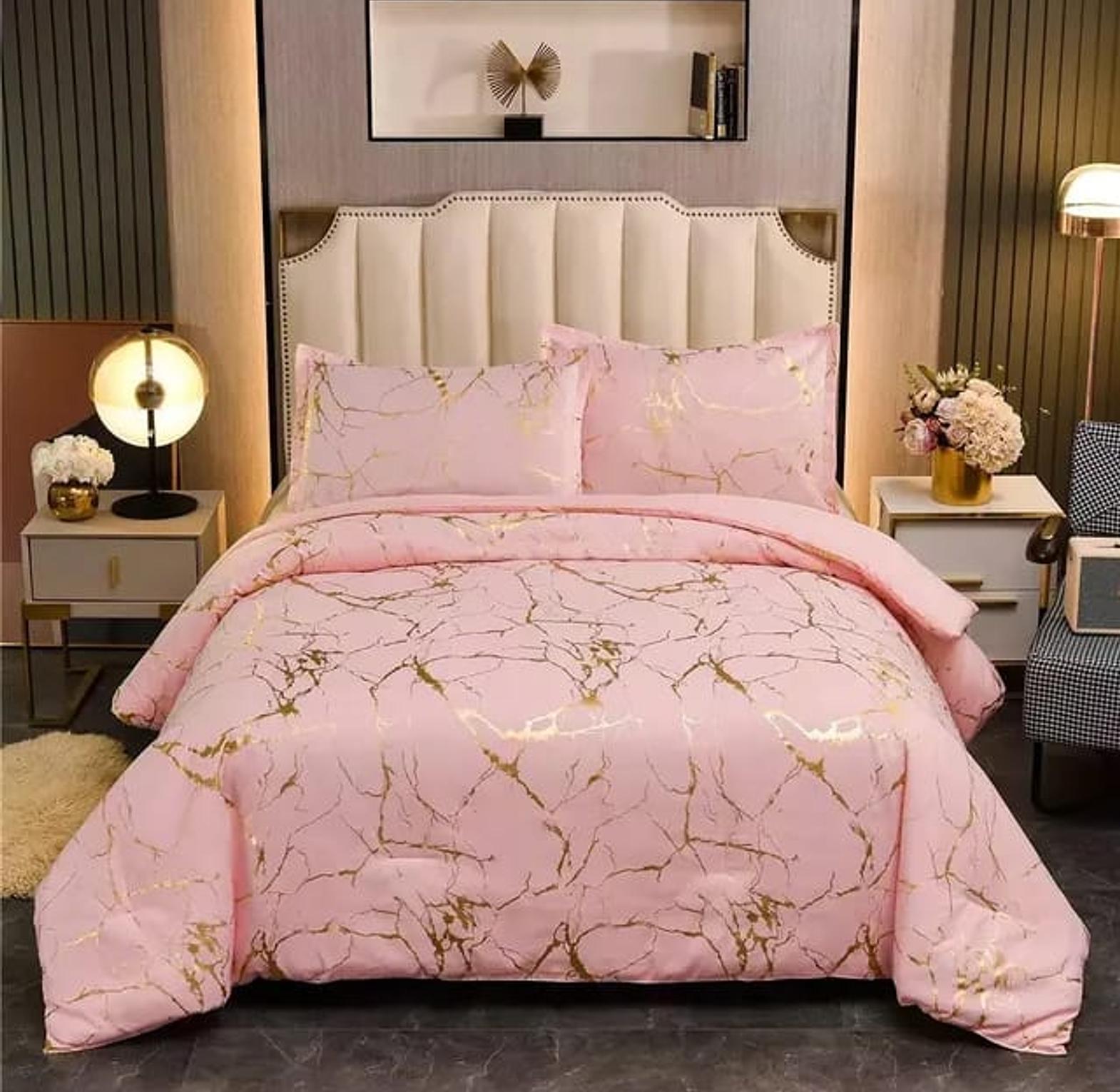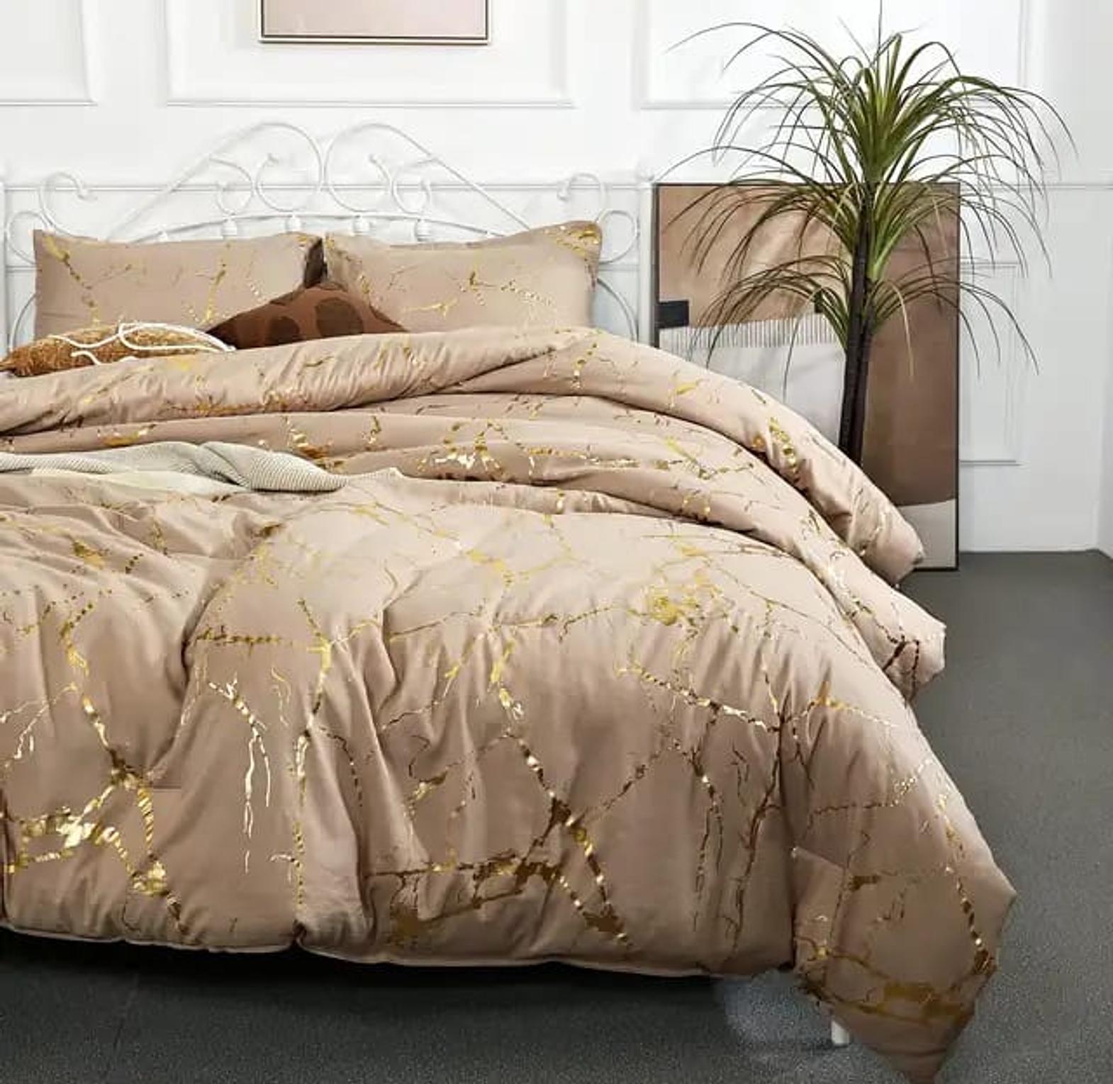 Luxury Gold Marble texture Foil style Duvet cover Set ▫️Size:6*6/6*7 ➖Duvet cover ➖Bedsheet ➖2pillowcases