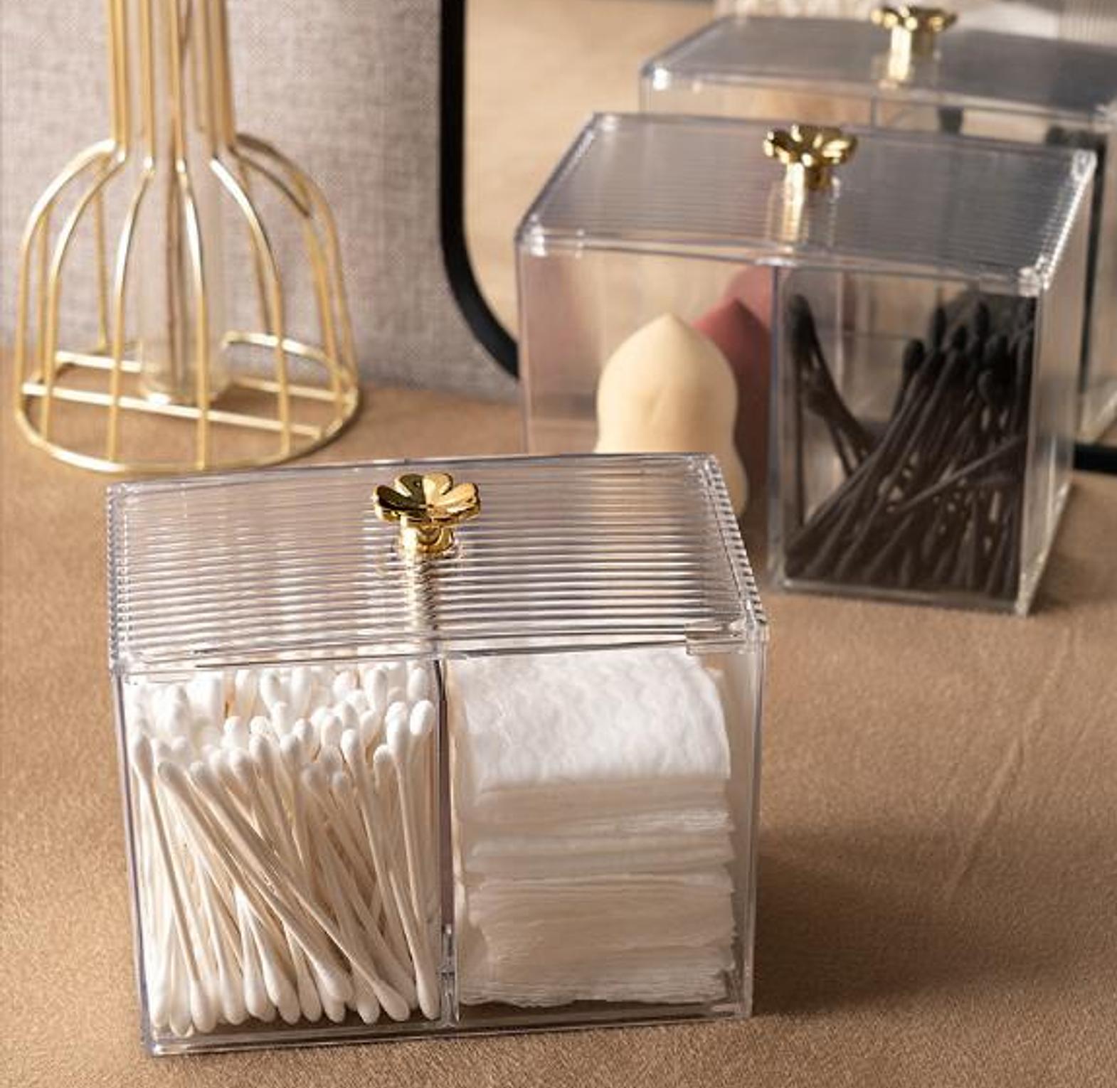 Makeup Storage Organizer Bathroom Jar Cotton Swab Storage Square Container Cotton Puff Storage Box Cosmetic Cotton Box