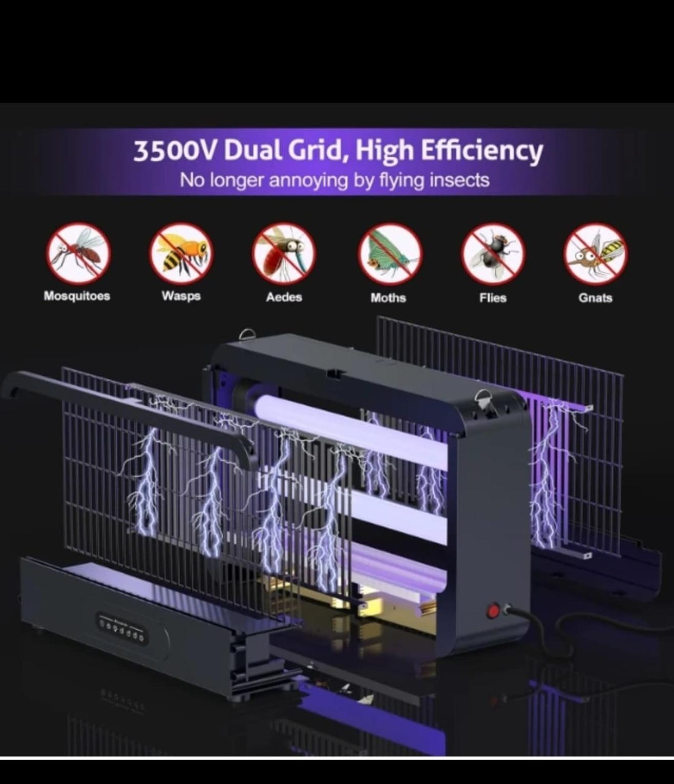 Mosquito light. ✴️Silent Guardian Mosquito-Free nights.. ✨ Kills Flying insects ie Mosquito/ Flies/ Moths/ wasps etc.. ✴️Double-layer 3500v + 500v Grid for faster elimination ❇️Safety first; Protective mesh prevents accidental contact ❇️Includes Remote (2h / 4h / 8h ) cleaning brush,chains and a pull-out Mosquito tray. 📍100% Chemical Free..[ Safer ]