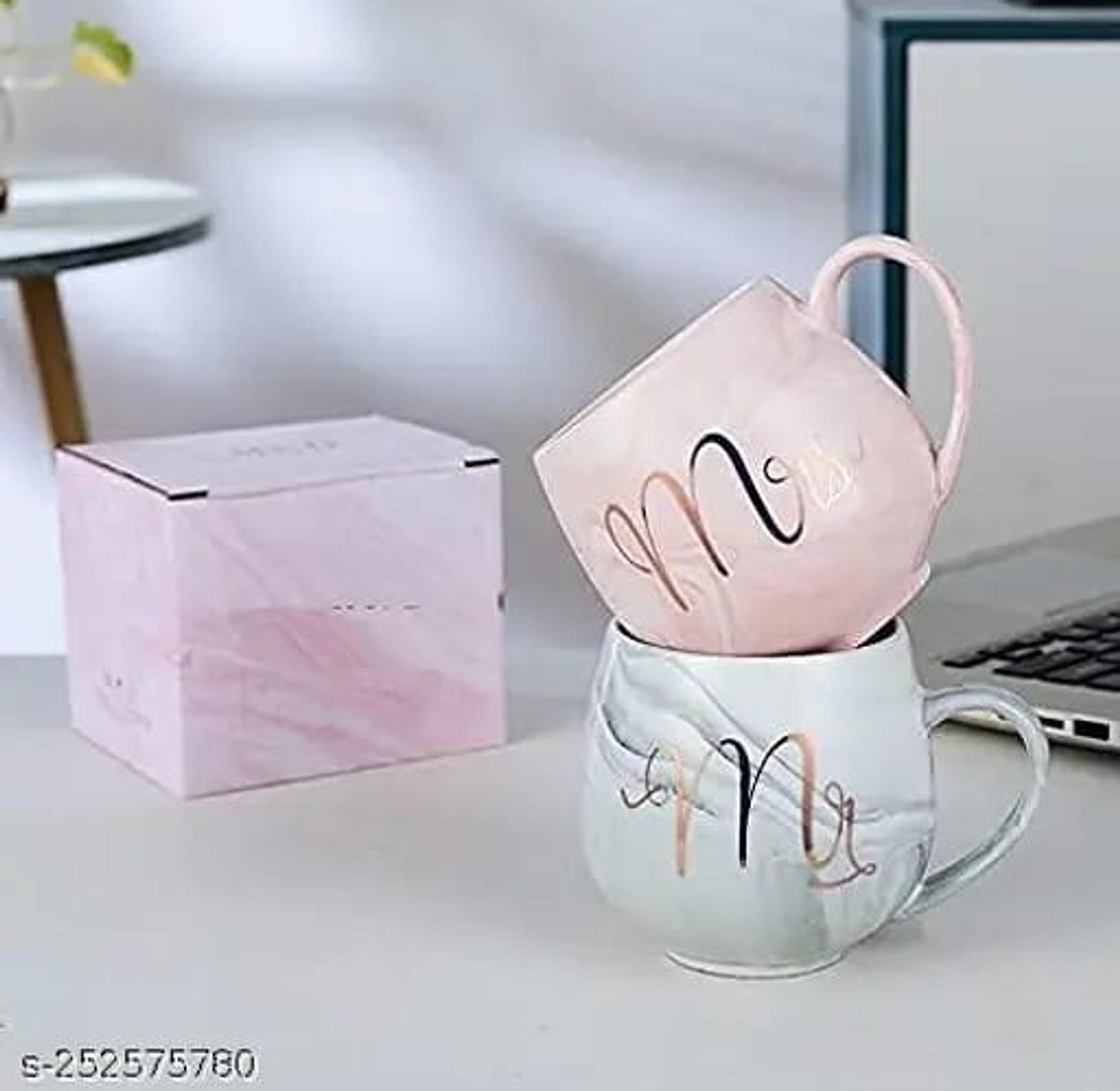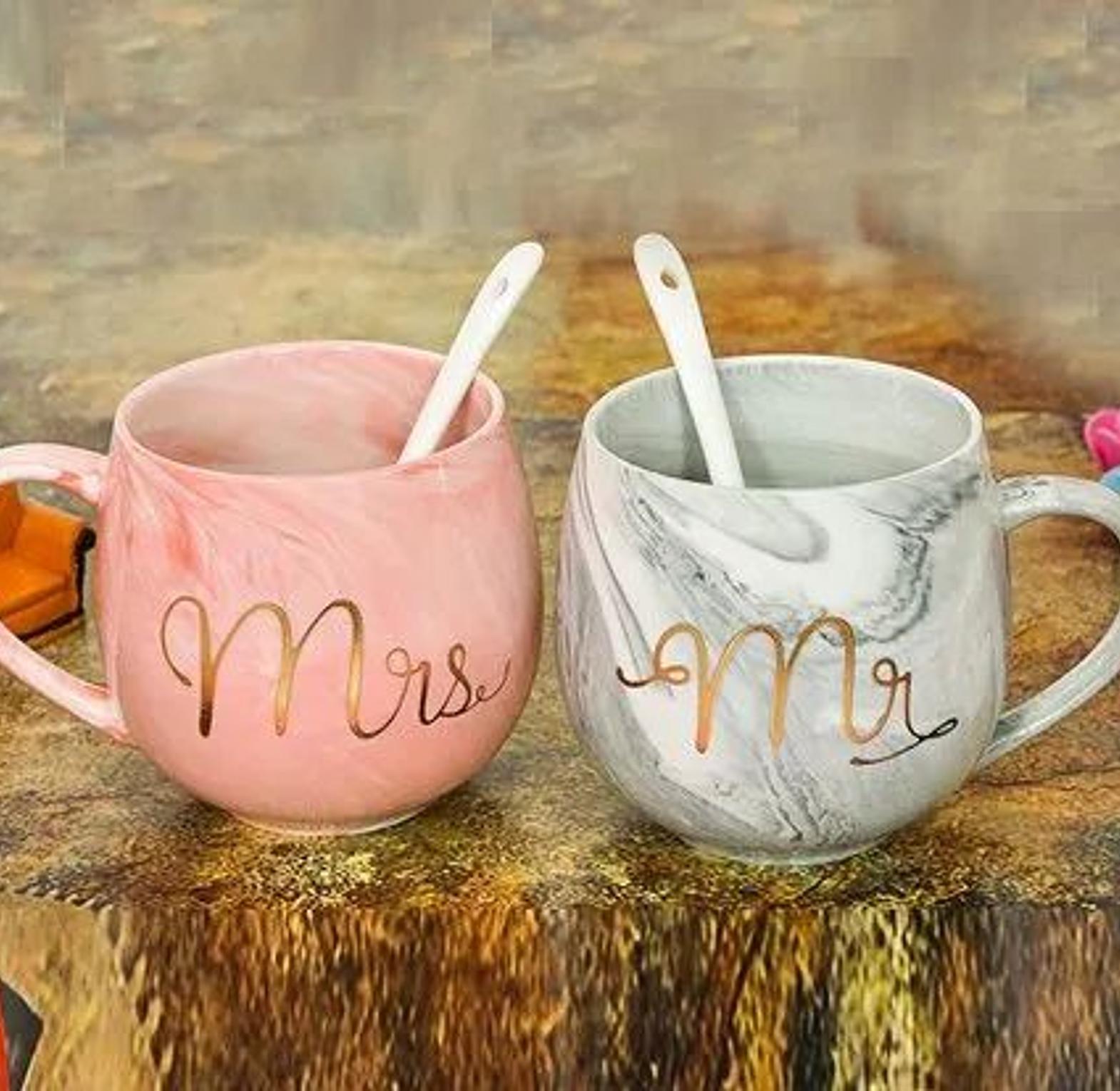 Elegant style HAPPY TIMES Mr & Mrs ceramic gift cup ideal family gifts ( with 2 golden spoons)