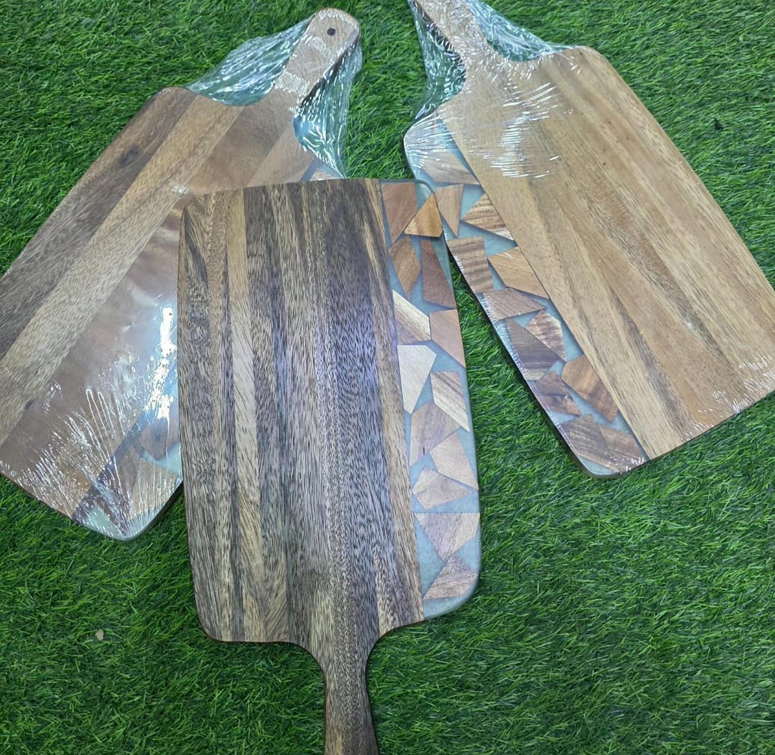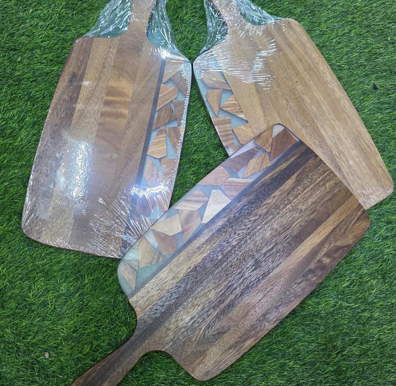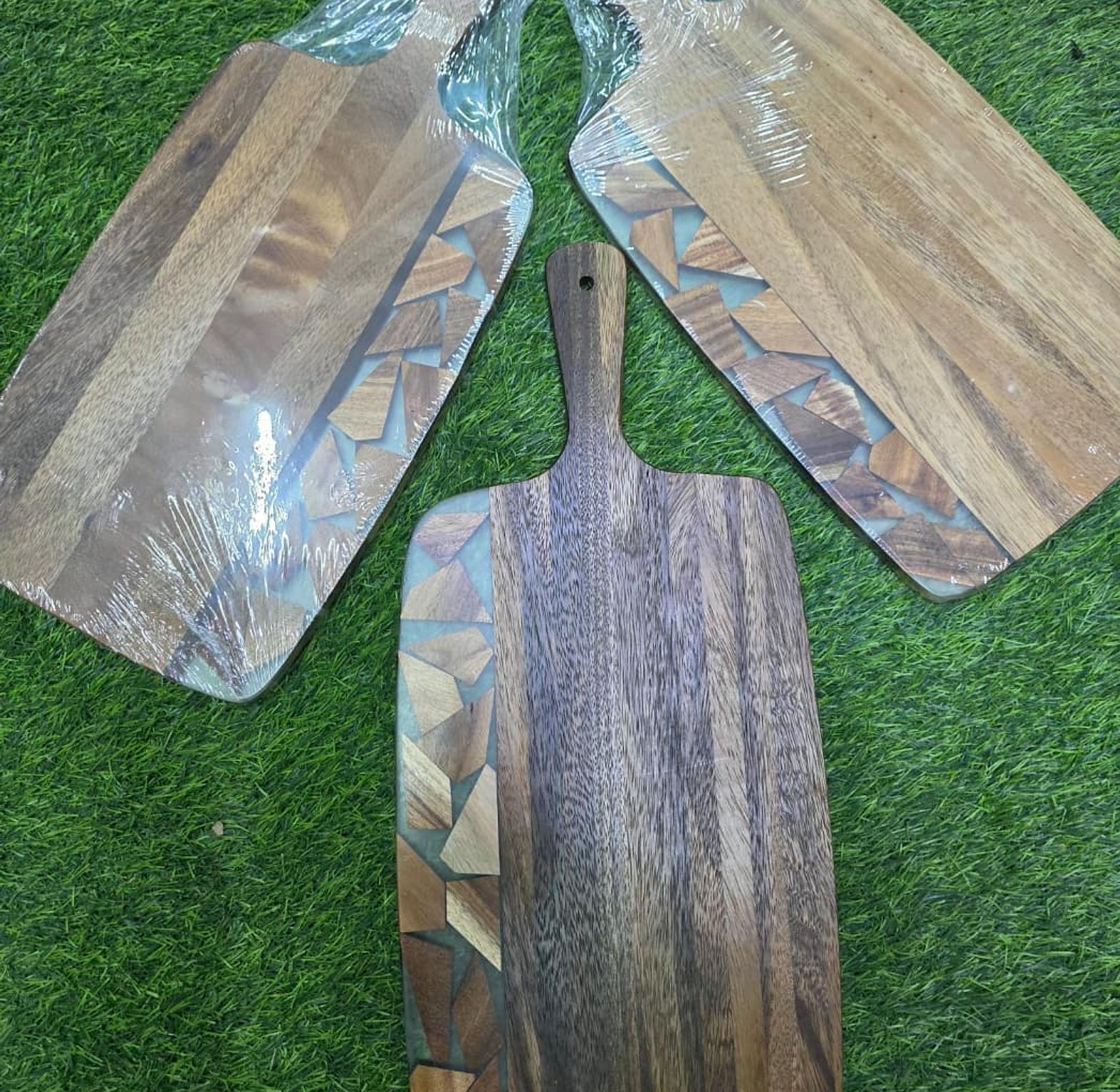 New Rectangular Acacia wood Cutting Board with Natural Custom Resin Stiching. ✴️Premium Quality heavy and Durable. ✴️Mulit-purpose cutting board / Tray serving board ie Cheese Meat/ Bread & Fruits ✴️Double side Cutting Board ❇️Size: 45cm*20.5cm*1.4cm