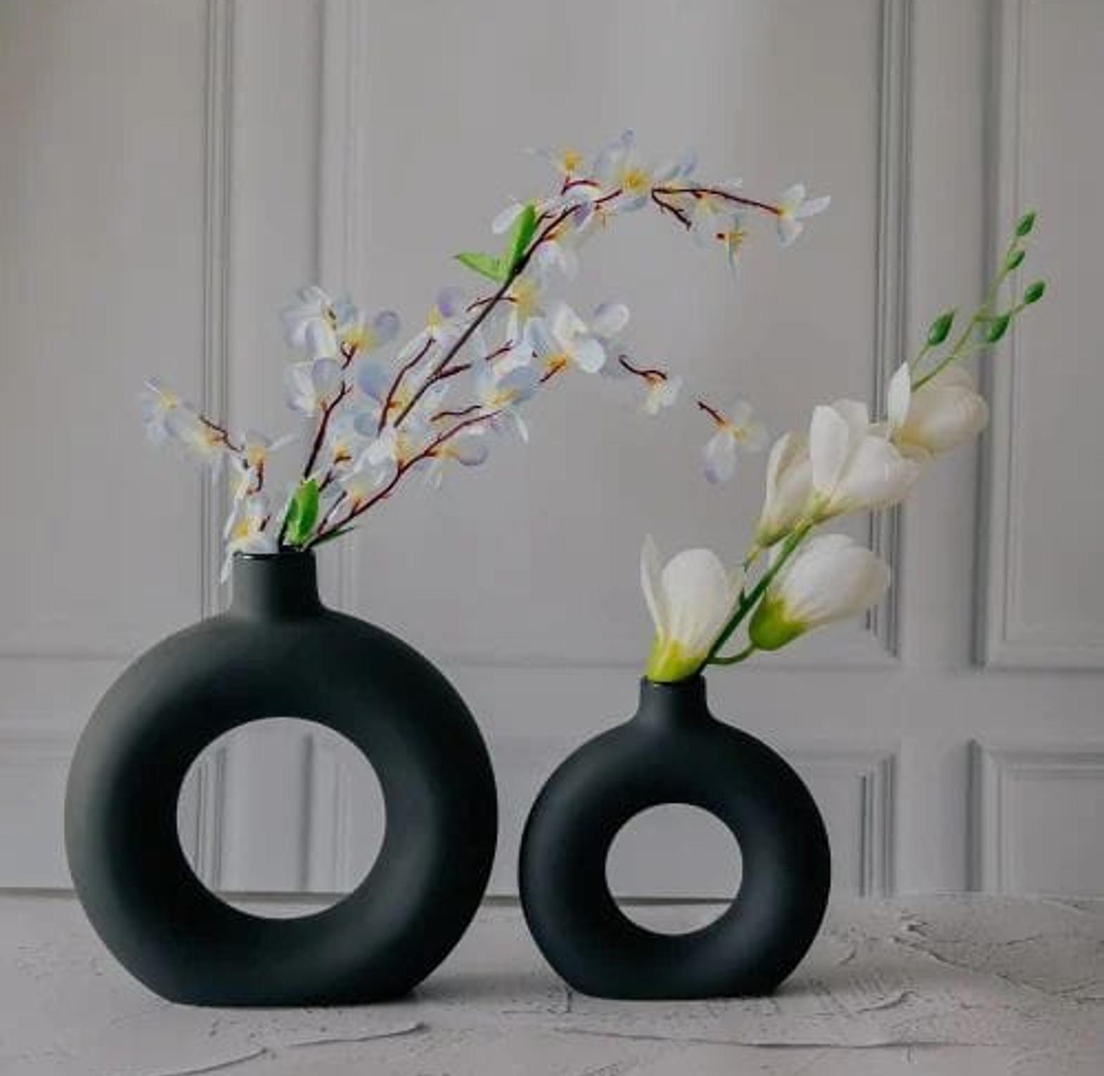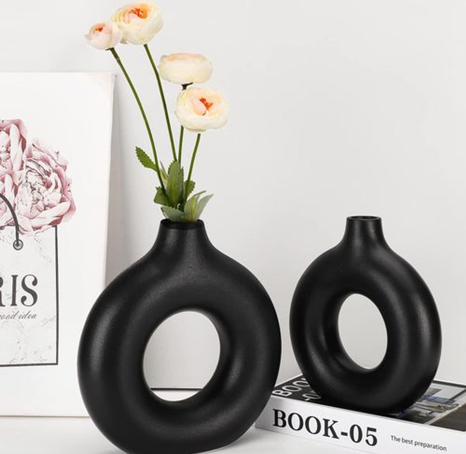 Porcelain ceramic 2in1 elegant decor Donut flower vases Available in BLACK or WHITE