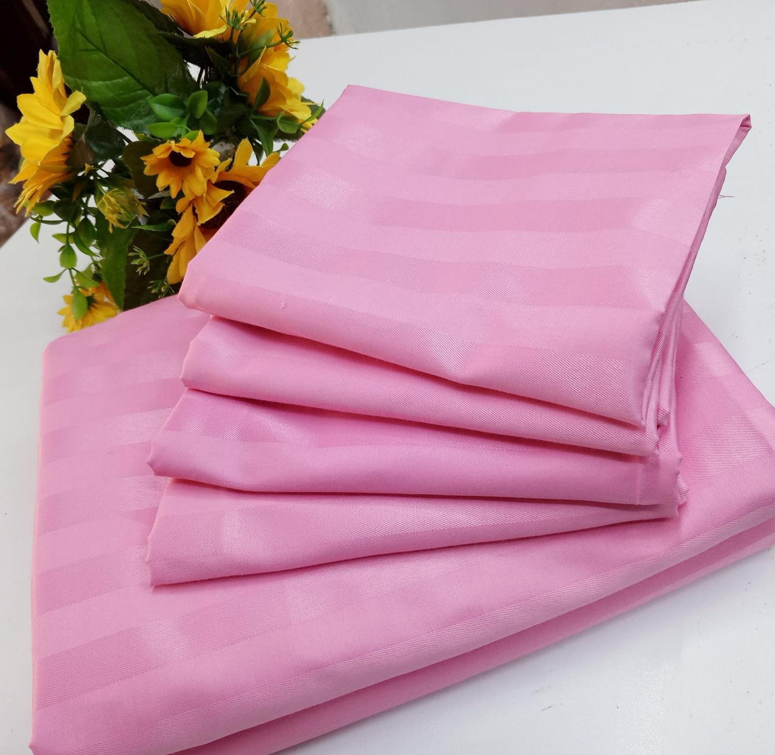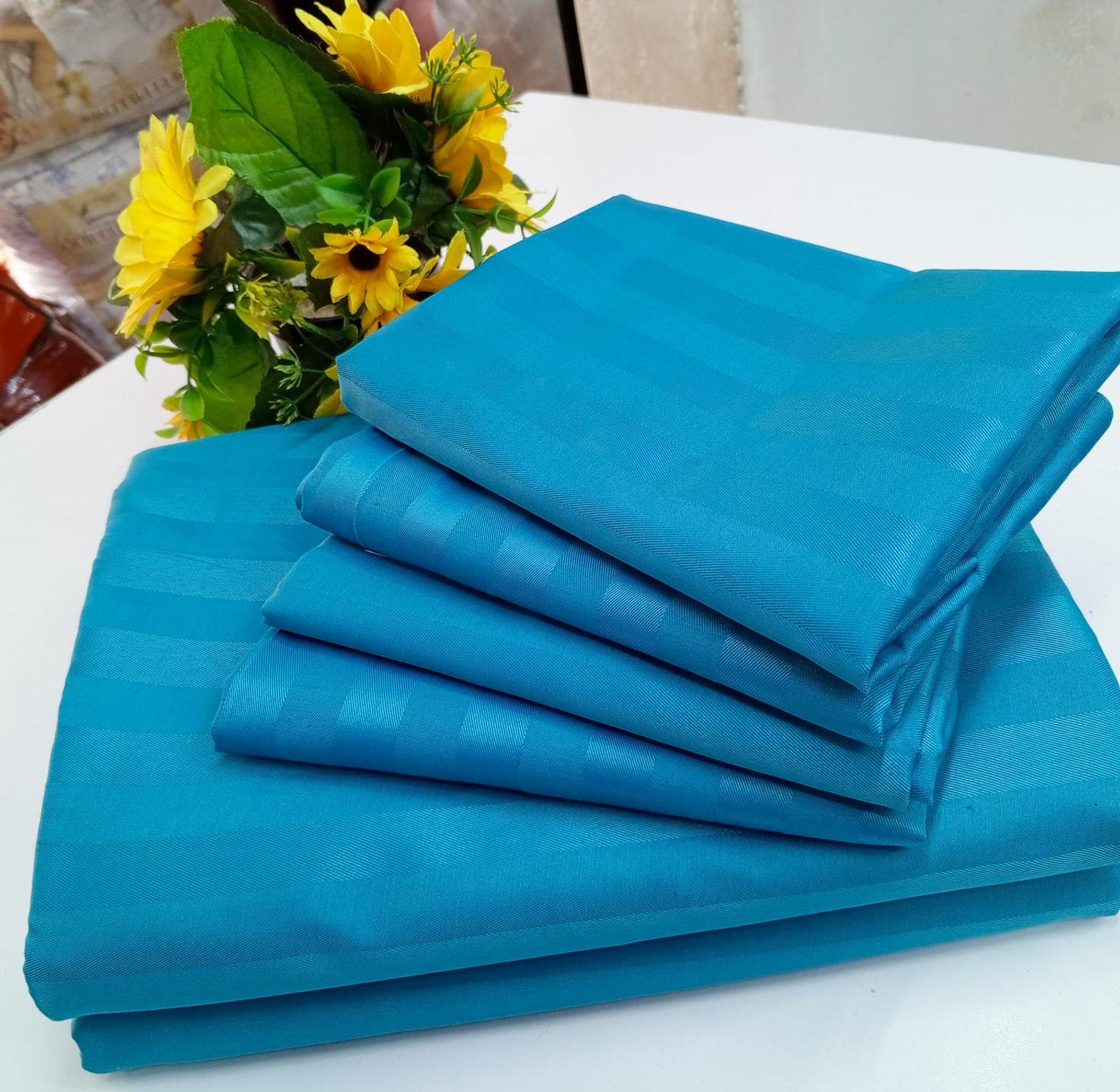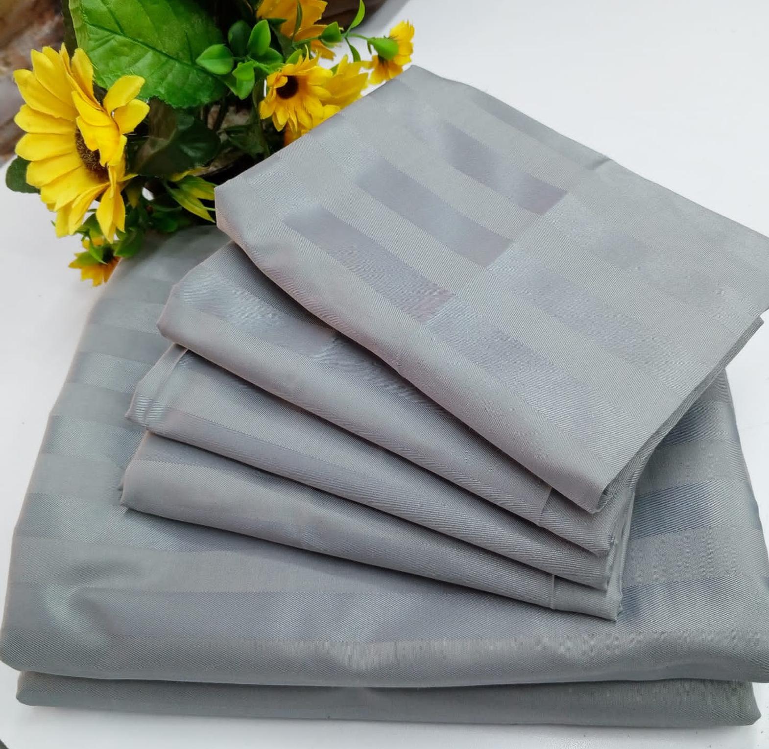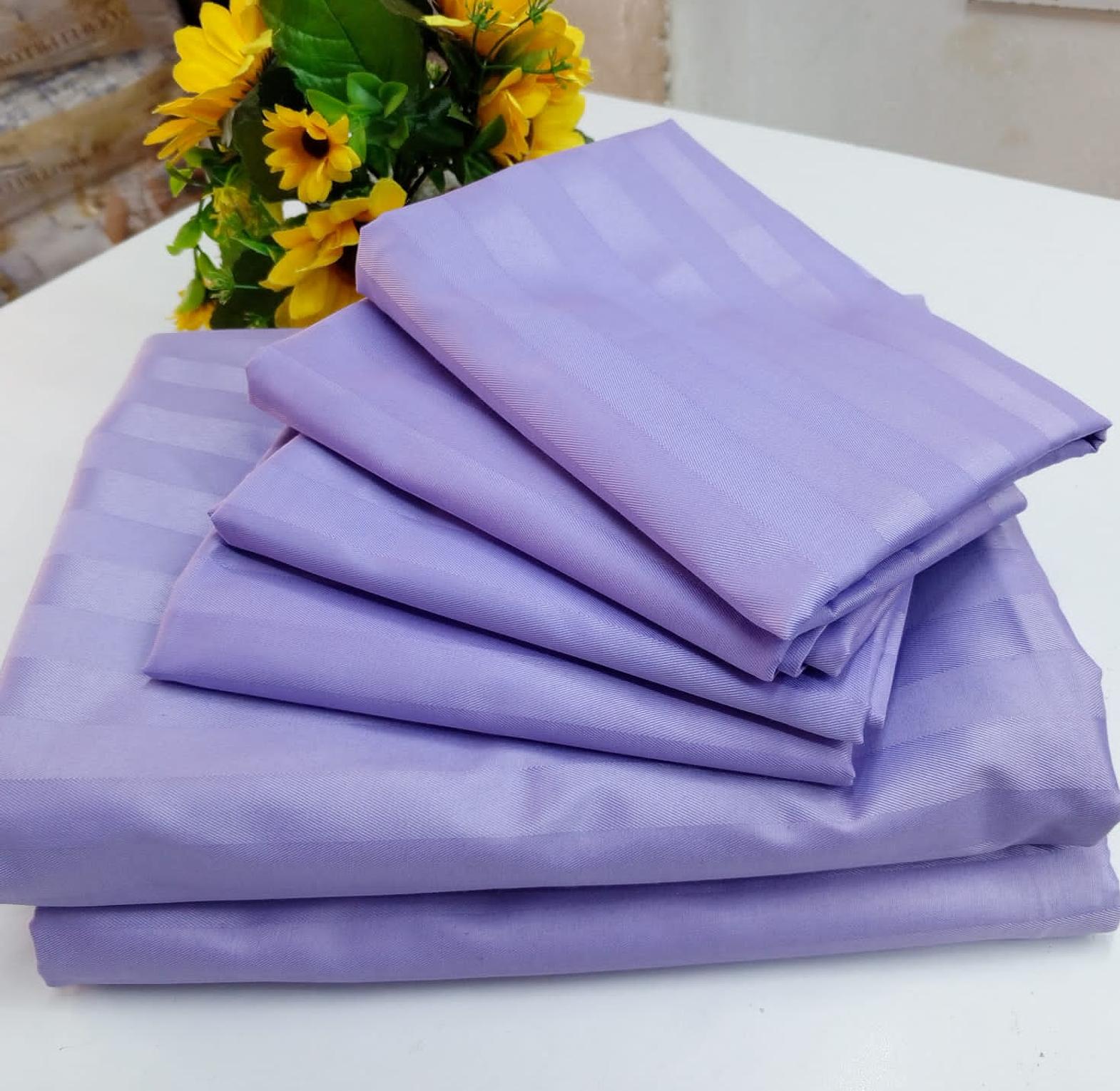 ▫️Satin striped bedsheets ▫️size 6 by 7 ▫️2 bedsheets ▫️4 pillow cases @