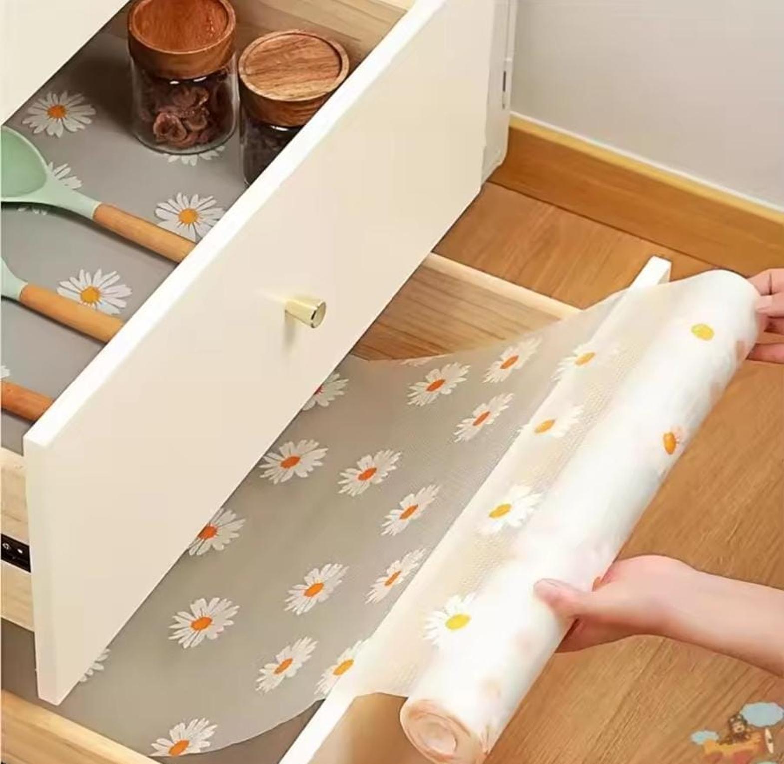 Easy to Use and Clean: Shelf liner is non-adhesive and reusable. Just measure the size you need, cut it according to the size and place. If there are stains or liquids on the surface, just wipe it with a damp cloth and it will be clean immediately.