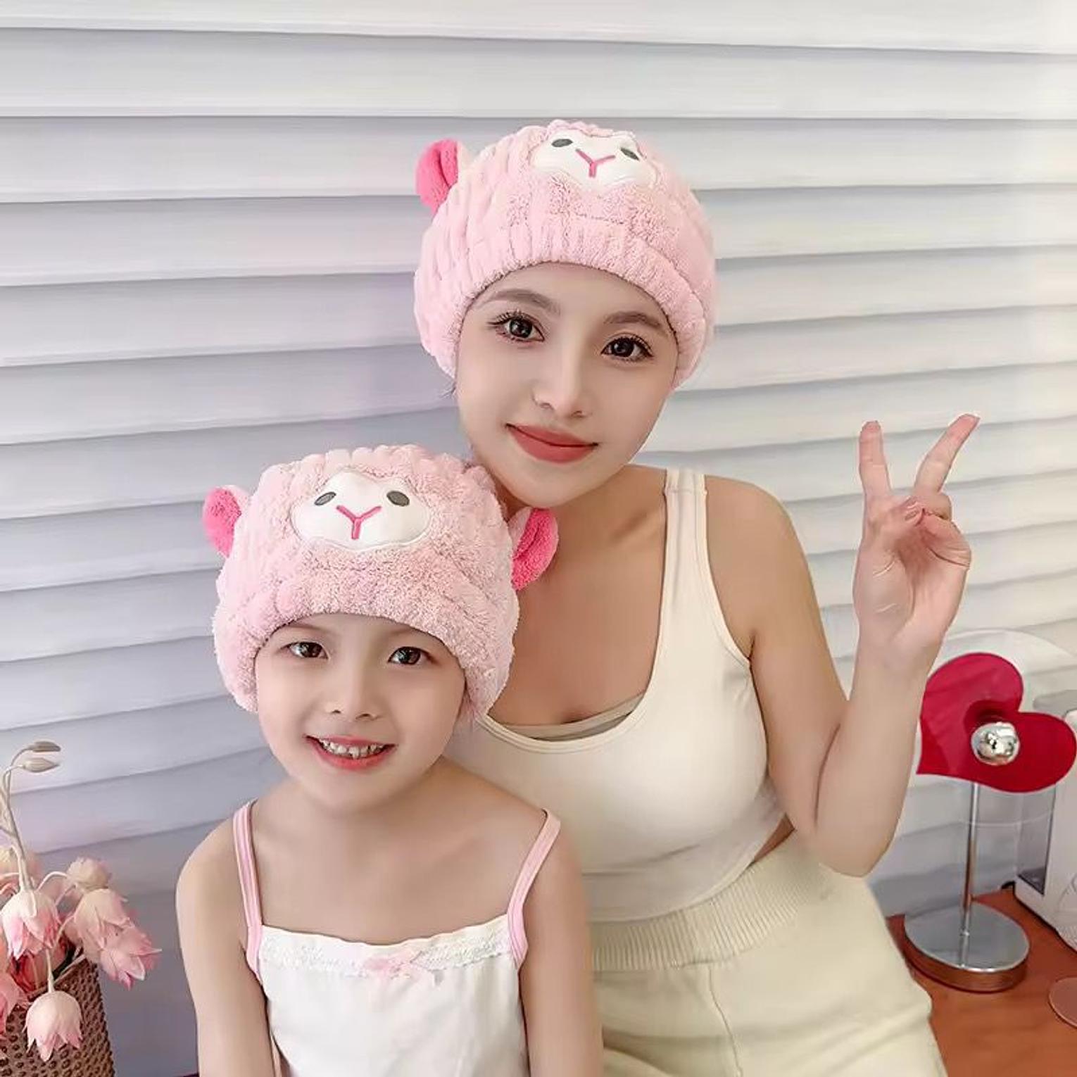 Sheep Microfiber Dry Hair Towel Cute Cartoon Women And Child After Shower Hair Drying Hat Absorption Turban Towels Bathing Tools. Worn both by kids and adults