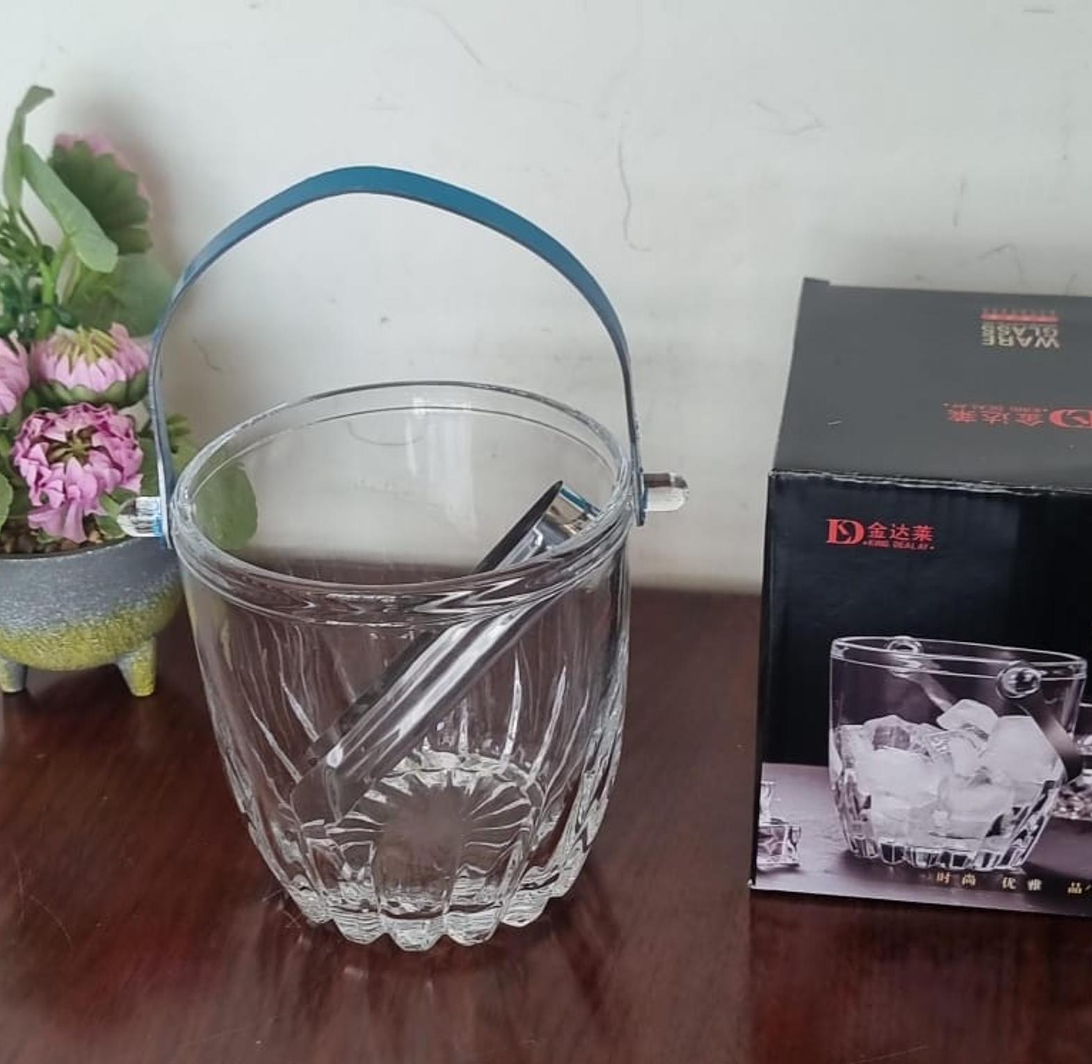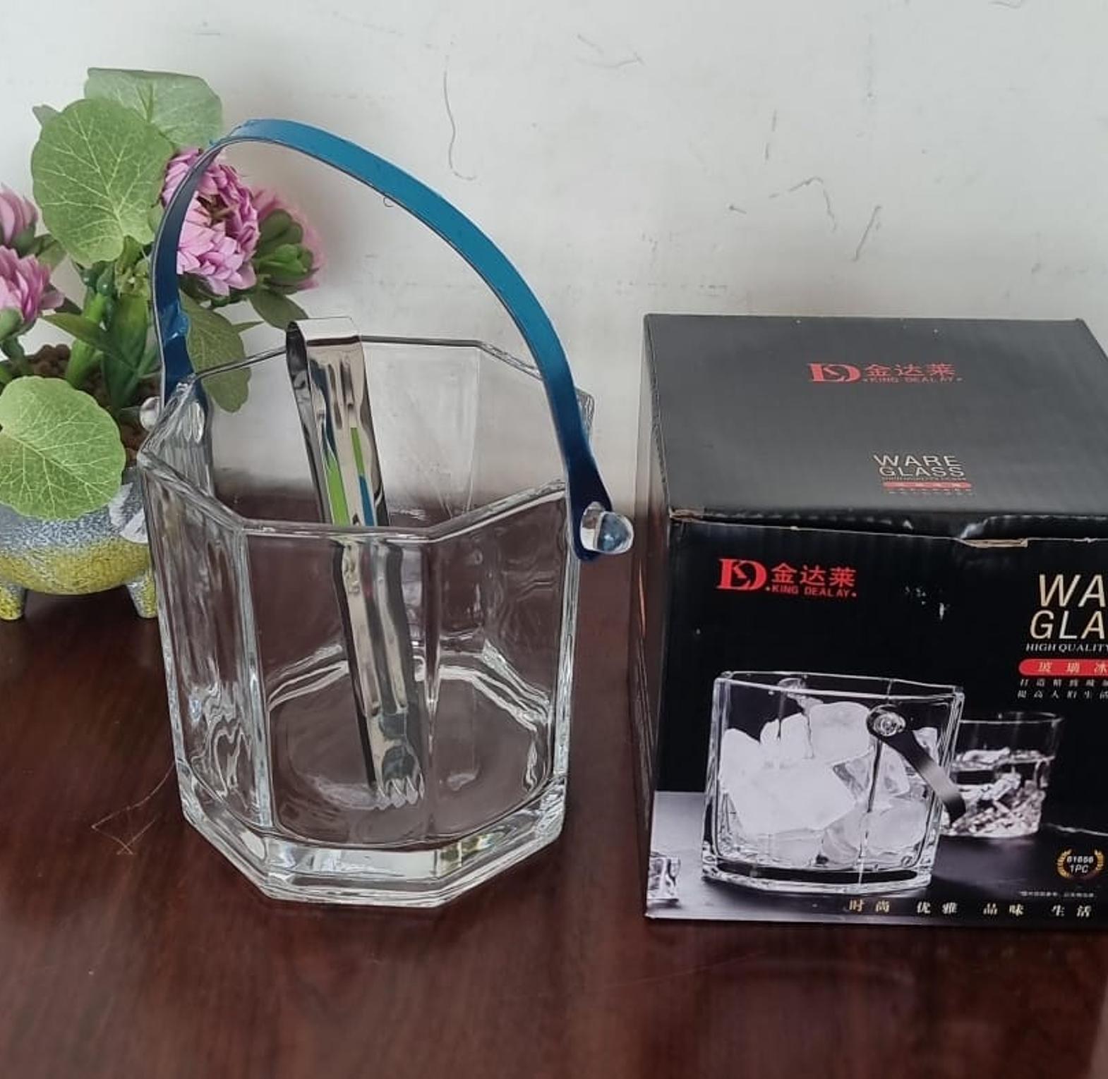 Made of high white glass, hardness, durable and safe. Thick wall to ensure your drink stay cool longer Packed with steel tong and clamp. Eaiser to pick and never hurt the bucket
