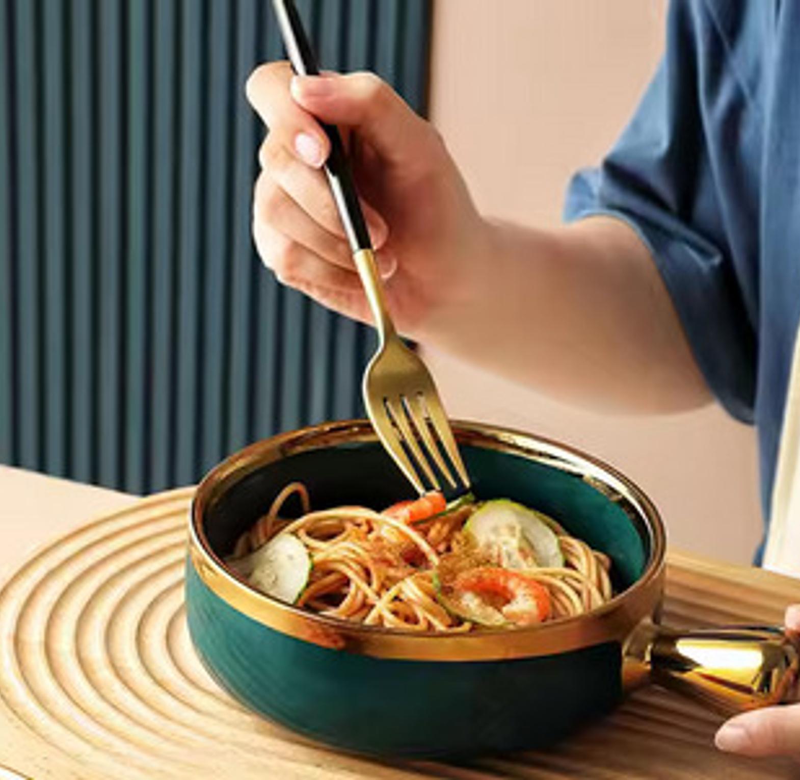 Snack bowl with handle and gold ring . ✅Material: porceline Perfect for cereals 😋and breakfast 👌