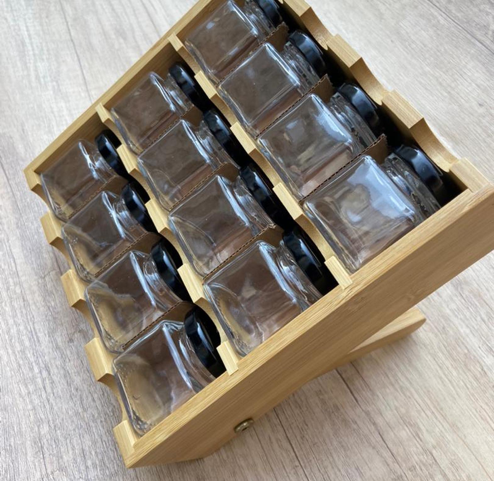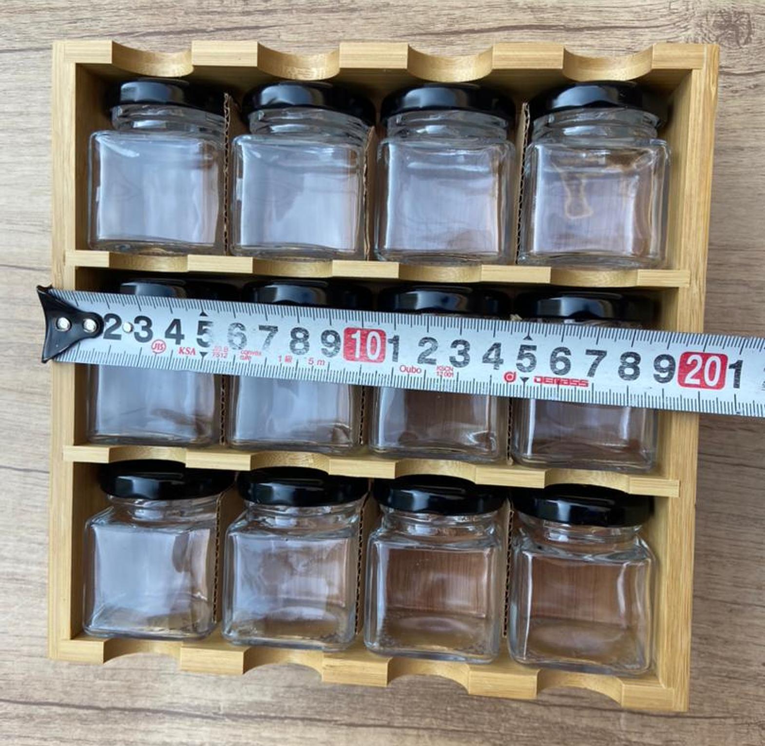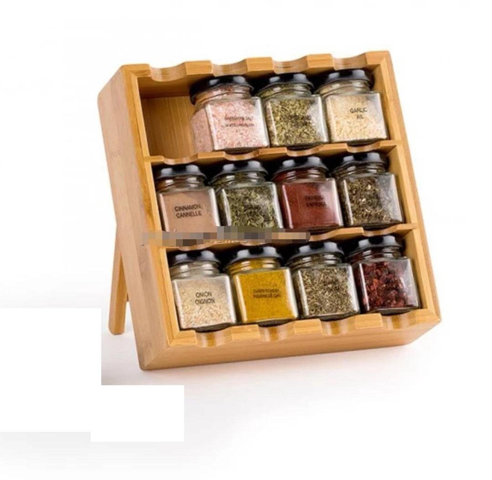 Material: Our spice racks is made of high quality glass and wood easel. This set is perfect for neatly storing organic herbs and spices and features a freestanding wooden condiment stands base for easy access to bottle.