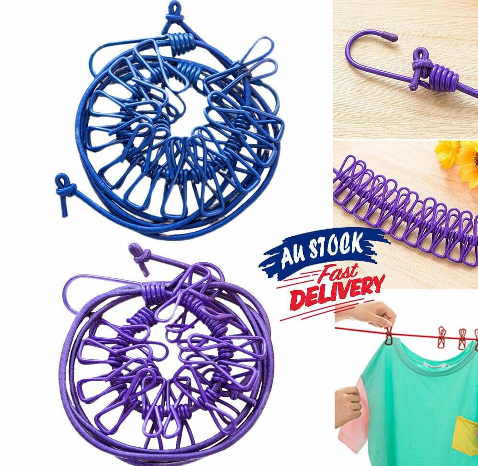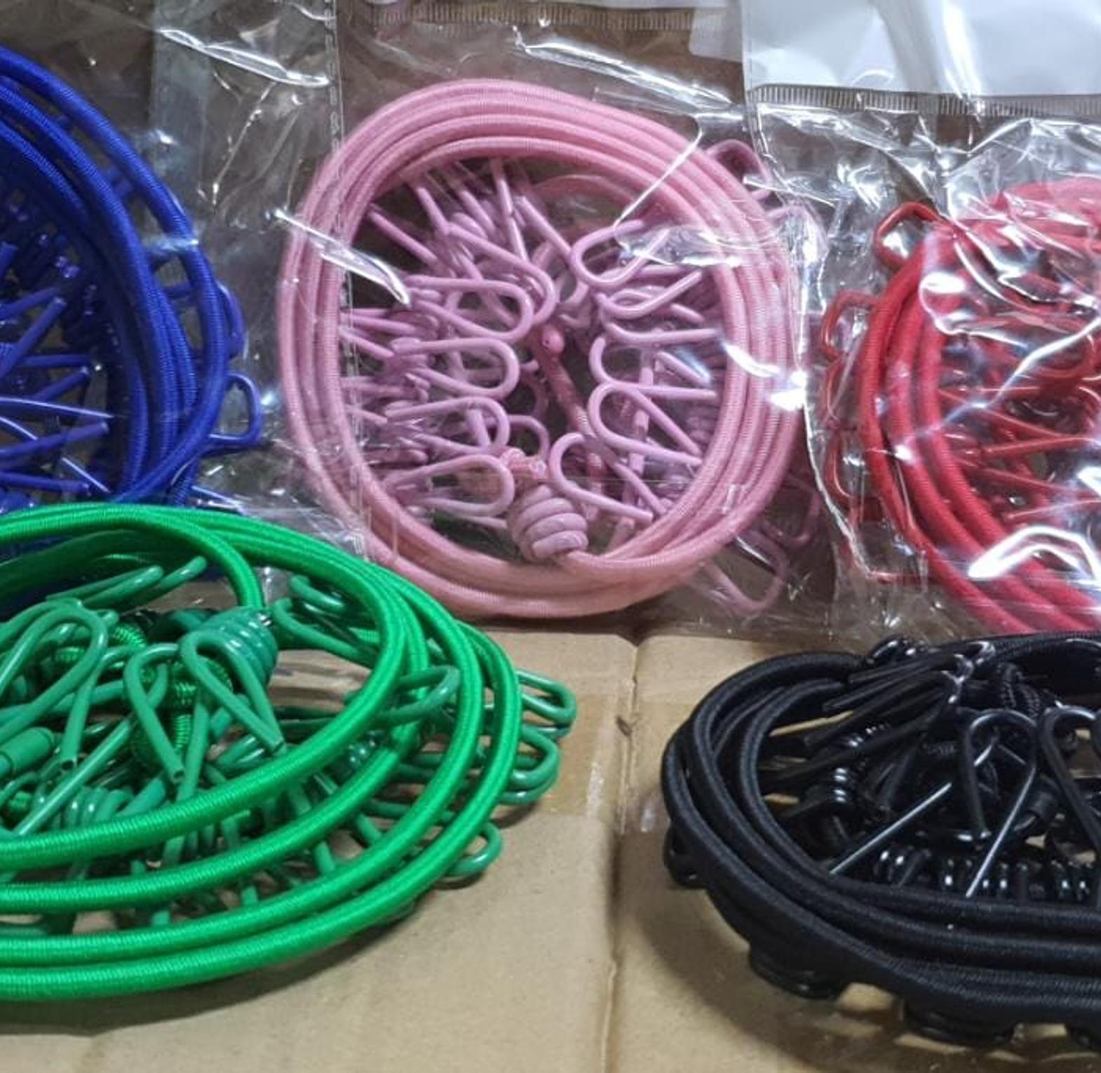 Strong 1.8m To 3.4m Stretching Cloth Line With 12 Pegs Durable Wild Travel & Portable Line Rope with Clips, Normal size 1.8 meters and stretched size 3.6 meters. Makes your laundry and hanging more easy