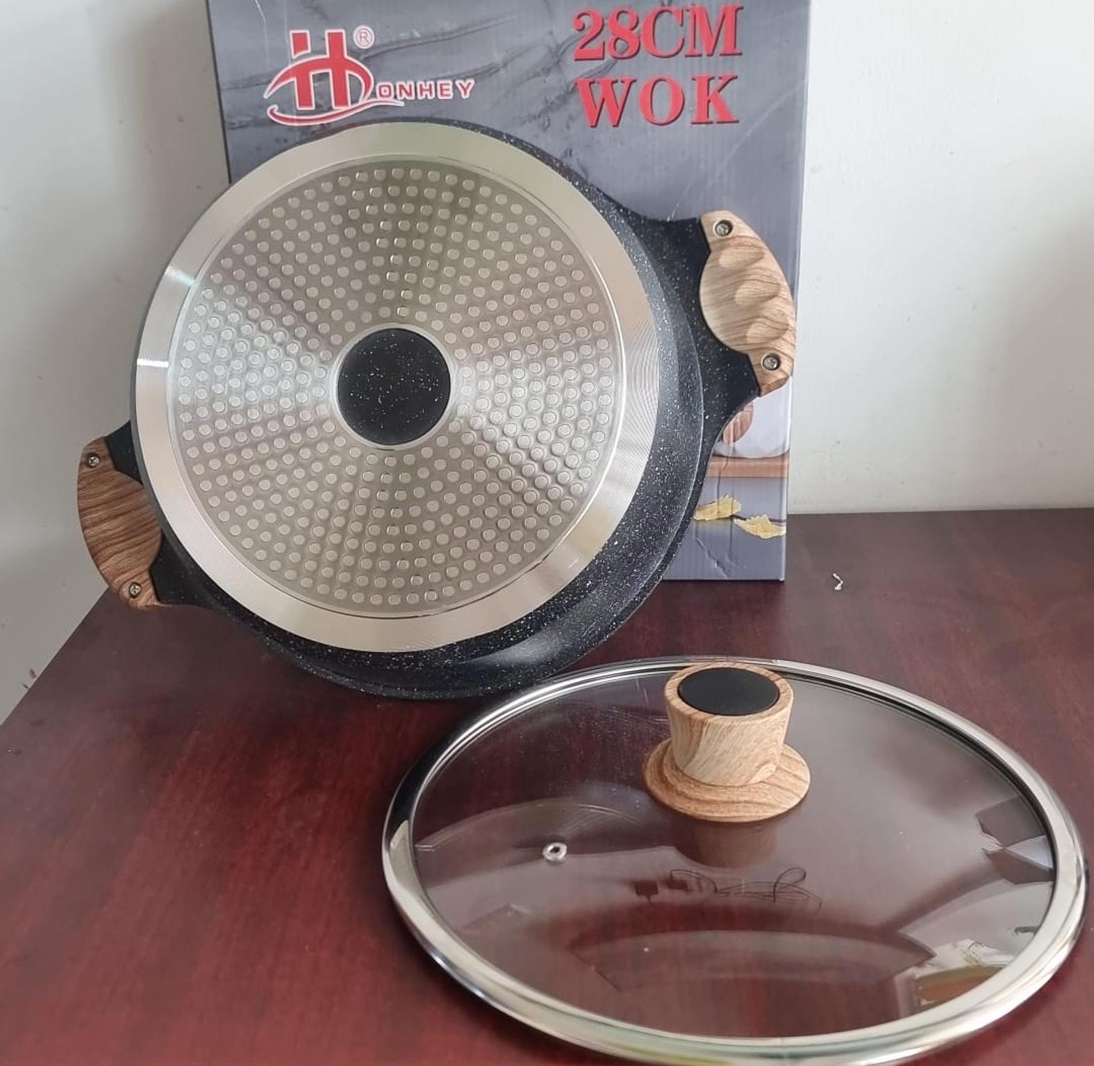 Single piece 28cm HonHey WOK granite partitioned cooking pot casserole