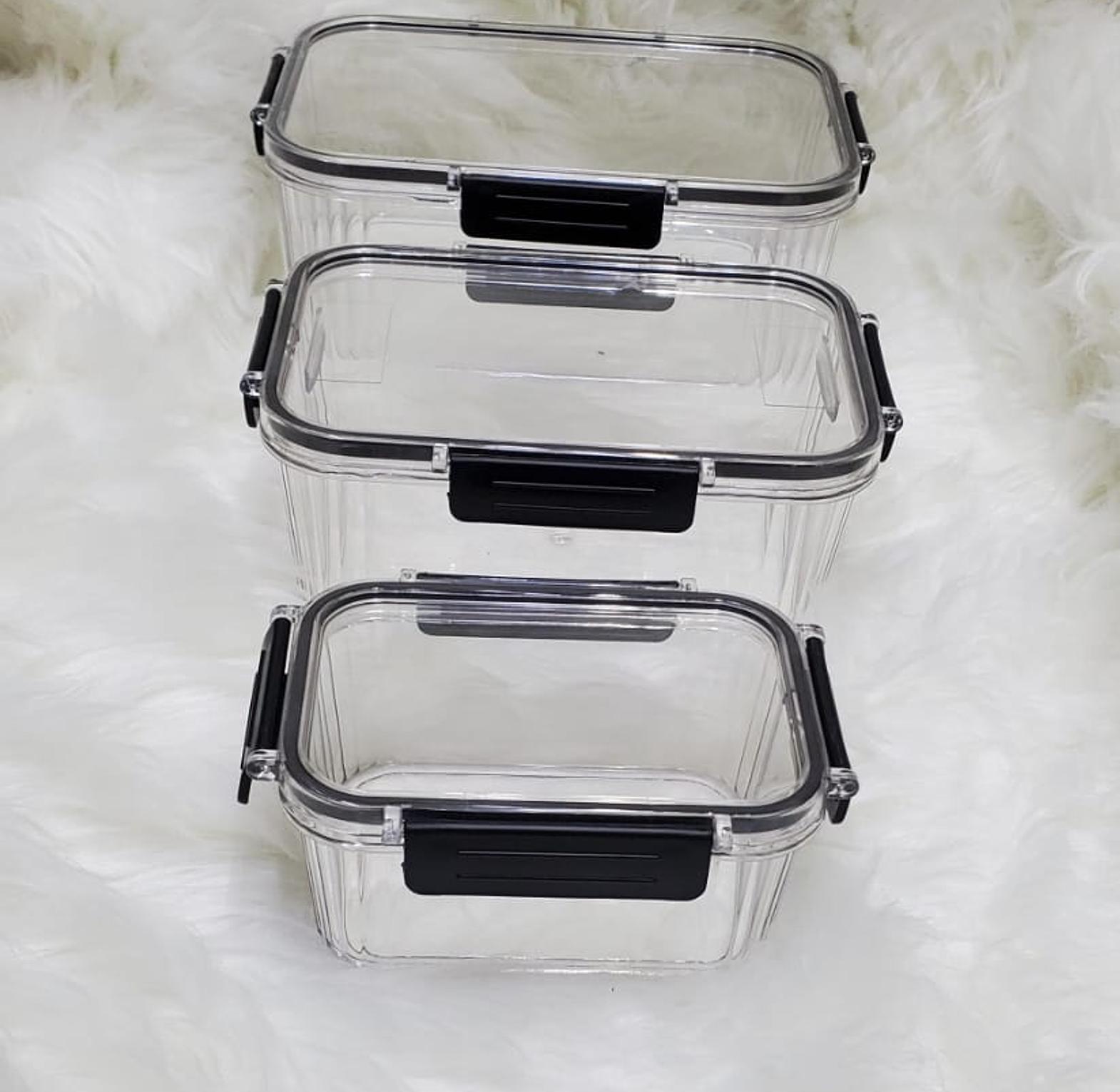 Transparent Airtight Pantry Boxes ⏩Multigrain Sealed Cans,Food Storage, Kitchen Refrigerator With Lid Fresh lock ⏩ Material. : ACYRIC ⏩ Capacity. :1100ml , 800ml && 460ml