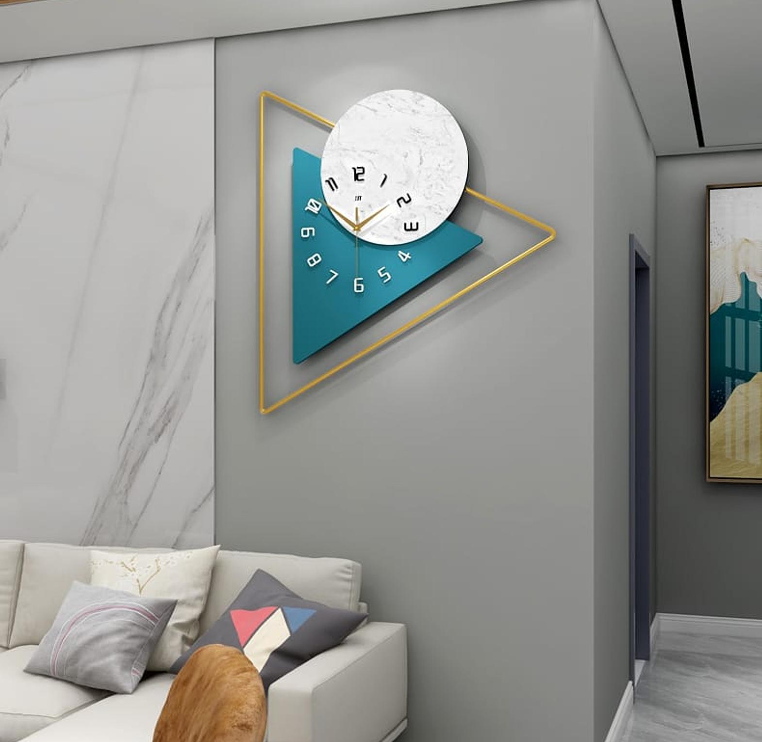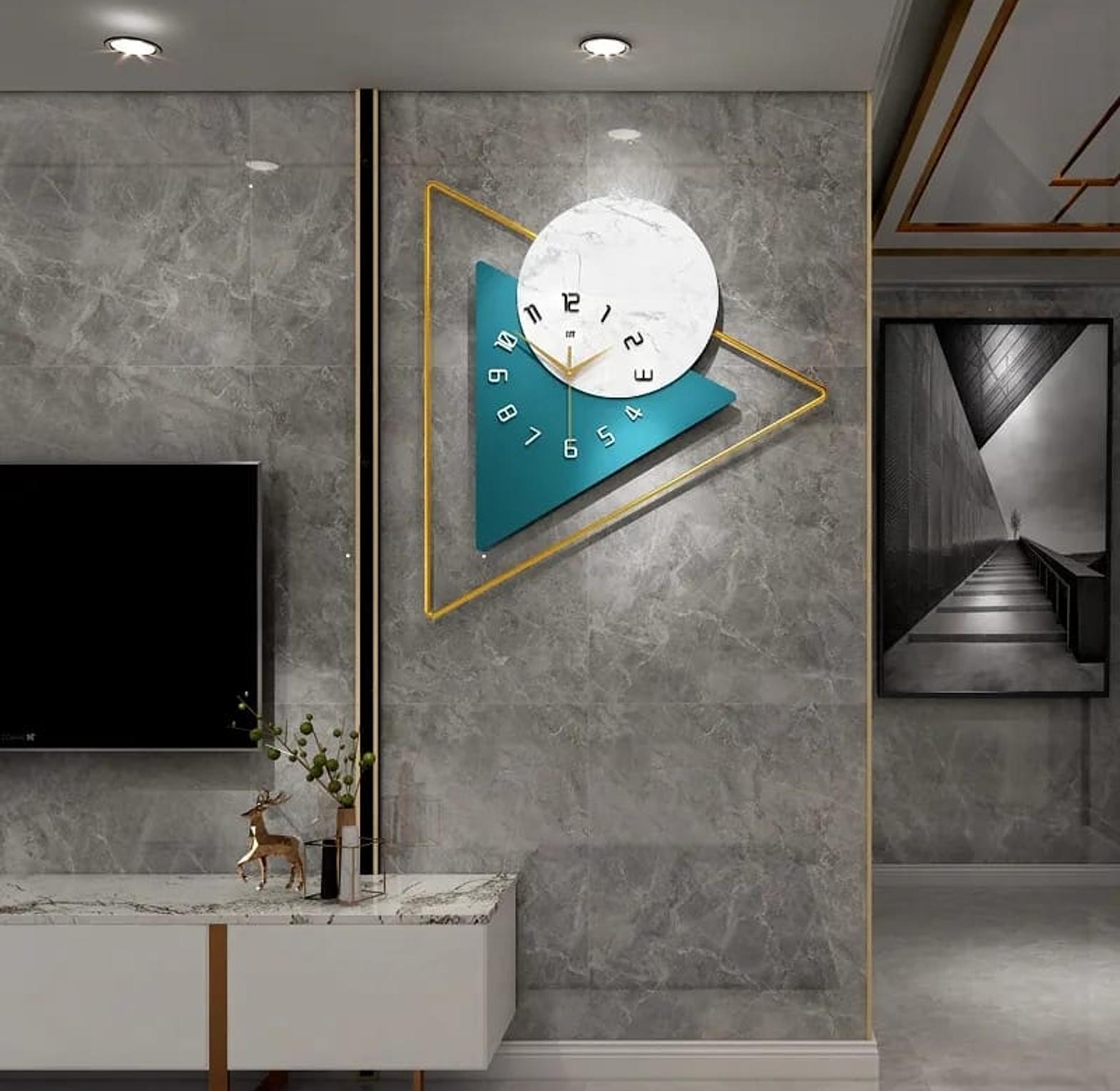 Triangular clock with white round part Luxury Large Wall Clock Modern Design Clocks Wall Home Decor Metal Silent Watches Creative Bedroom Living Room Decorative Gift