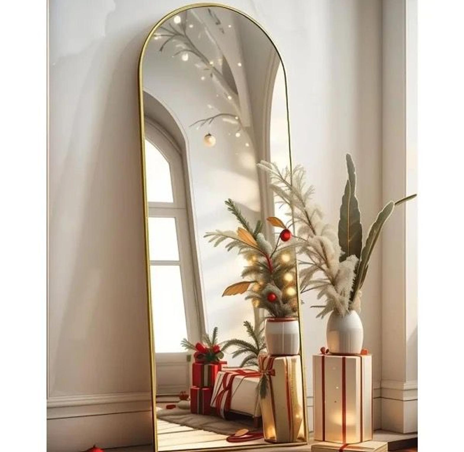 Full-Length Mirror: This is a 40*140cm full-size mirror, enough for you to see your entire figure in a single glance and bring you light, beauty, and confidence Classic Design: The glass is surrounded by a thin aluminum alloy frame, which is very durable and easy to maintain and clean. The classic and simple thin frame design is perfect for the retro High-quality Glass: The arch full body mirror is made of high-quality float glass which can provide super HD imaging and undistorted reflection. The back is covered with an explosion-proof membrane Easy Installation: Our full-length mirrors can be leaned to the wall or free-standing with the stand anywhere in your room. The humanized hook design and complete accessories make installation
