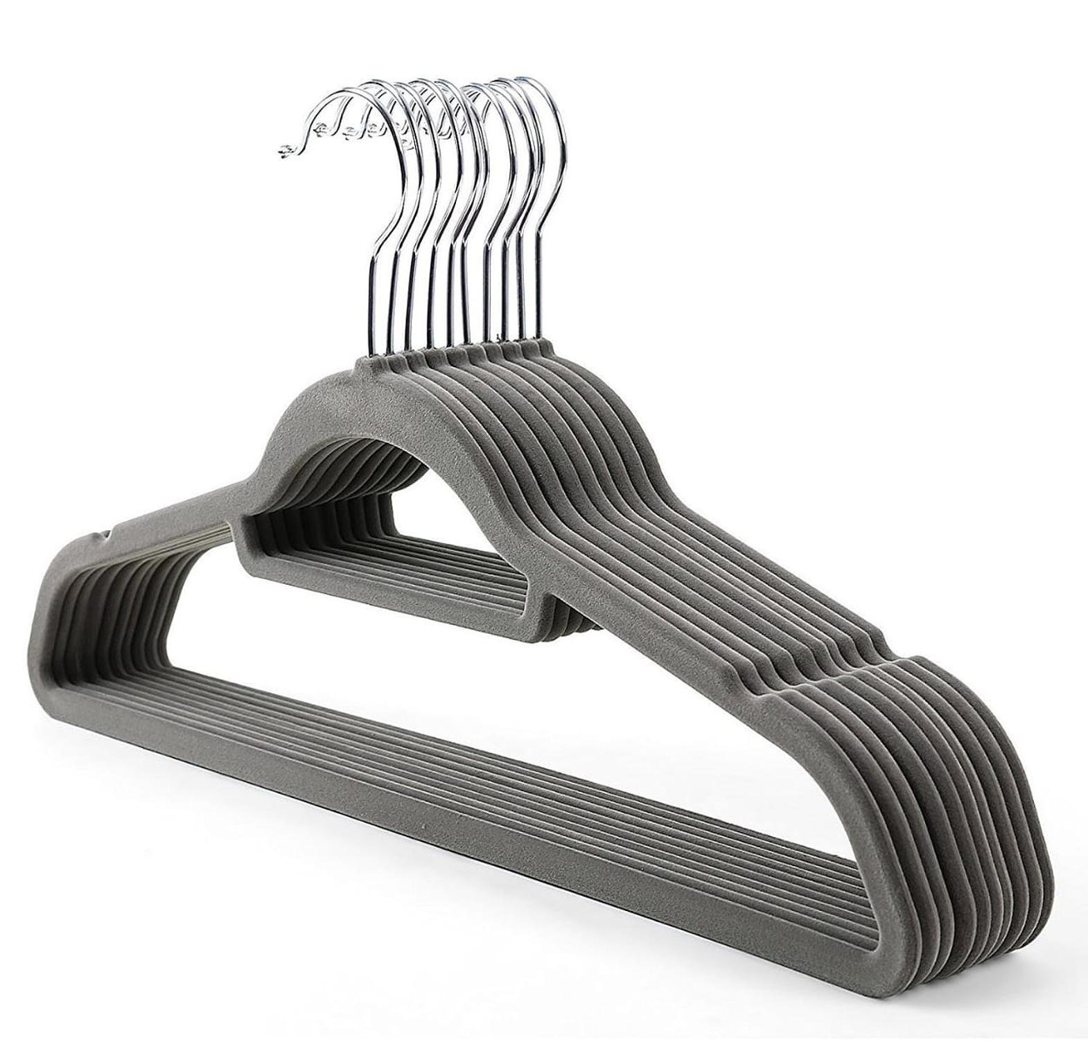 DURABLE SWEATER HANGERS - Featuring smooth, black, non-slip velvet, 360 degree swivel hooks, and notched shoulders, this coat hanger set makes storage simple and stylish