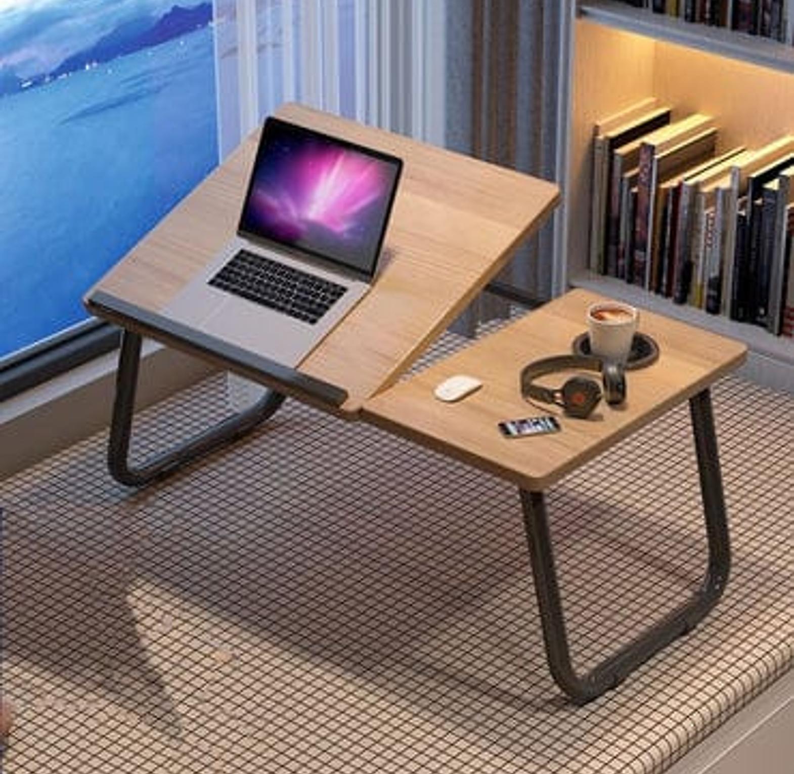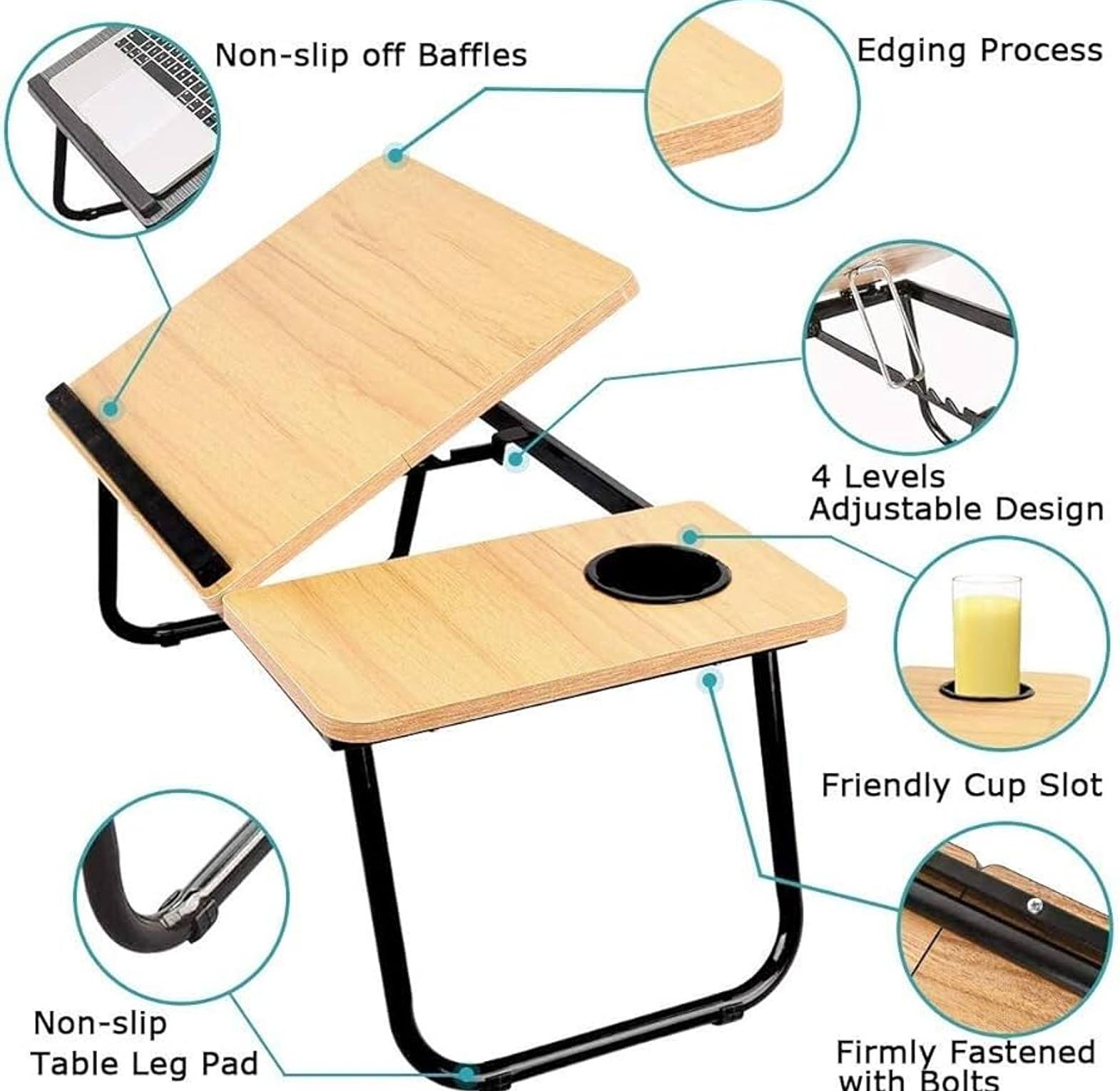Wooden profile 5 levels Adjustable angle foldable study table or laptop table with cup slot