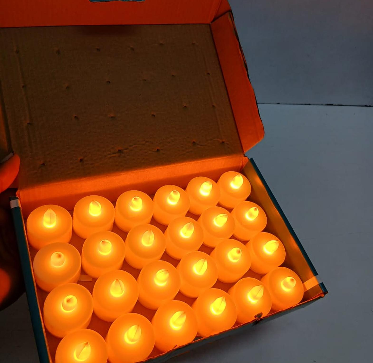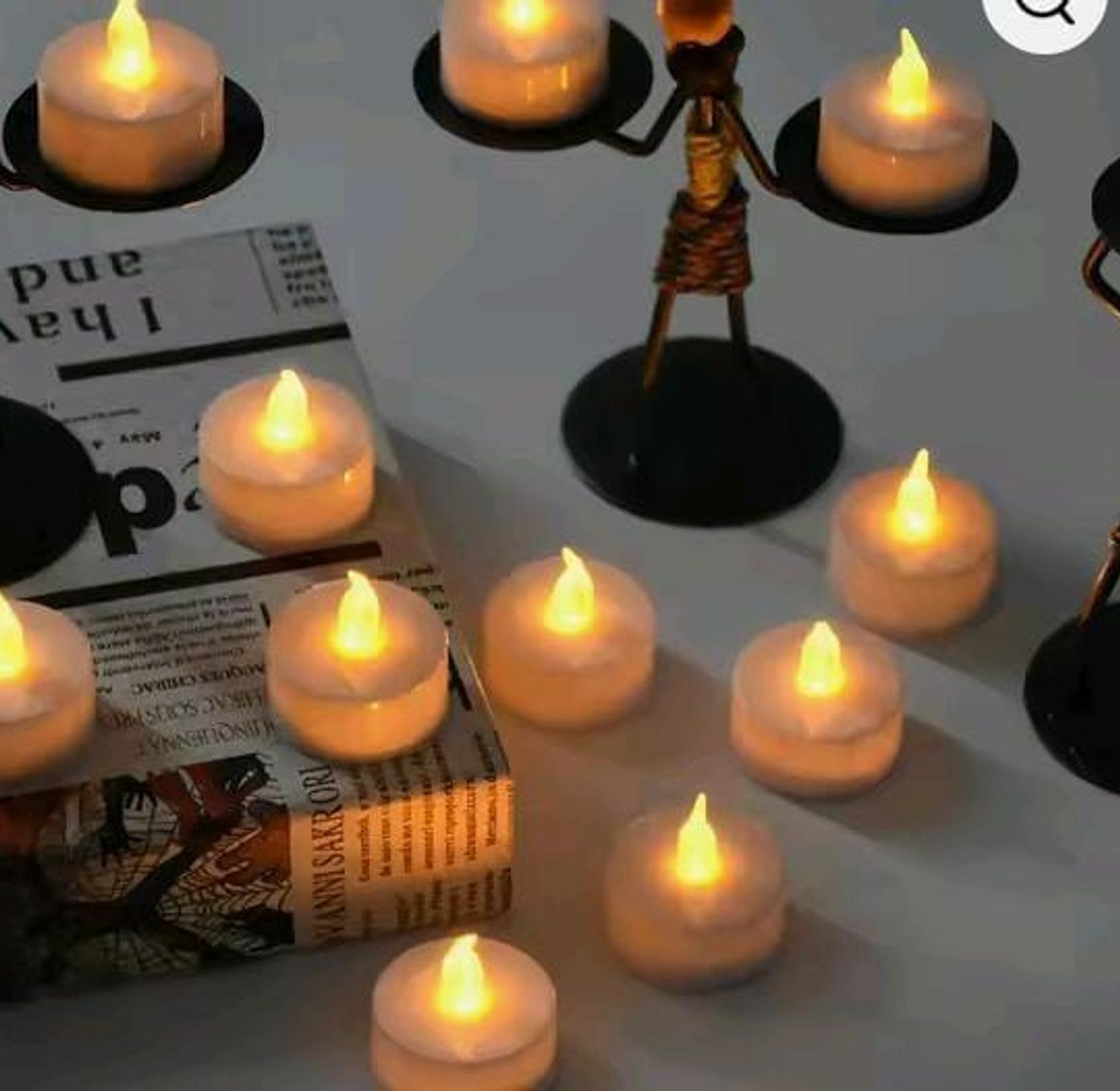 24 pcs Led tea light candles available sold per pack ✔️Material: acrylic coloured ✔️colours: white available
