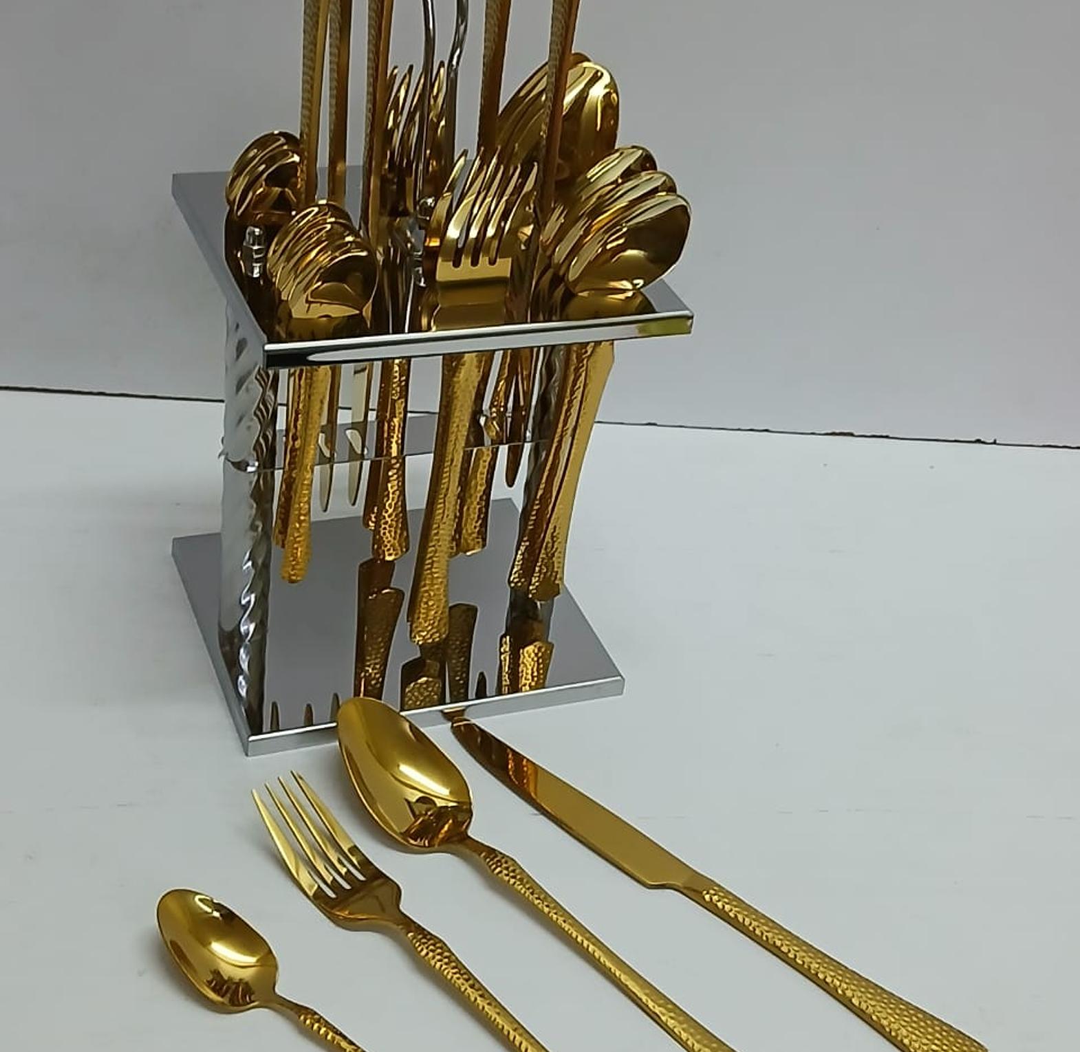 25 pcs Dining glister Astrid cutlery set with stand ⏯️ Colour ; Silver and Gold available