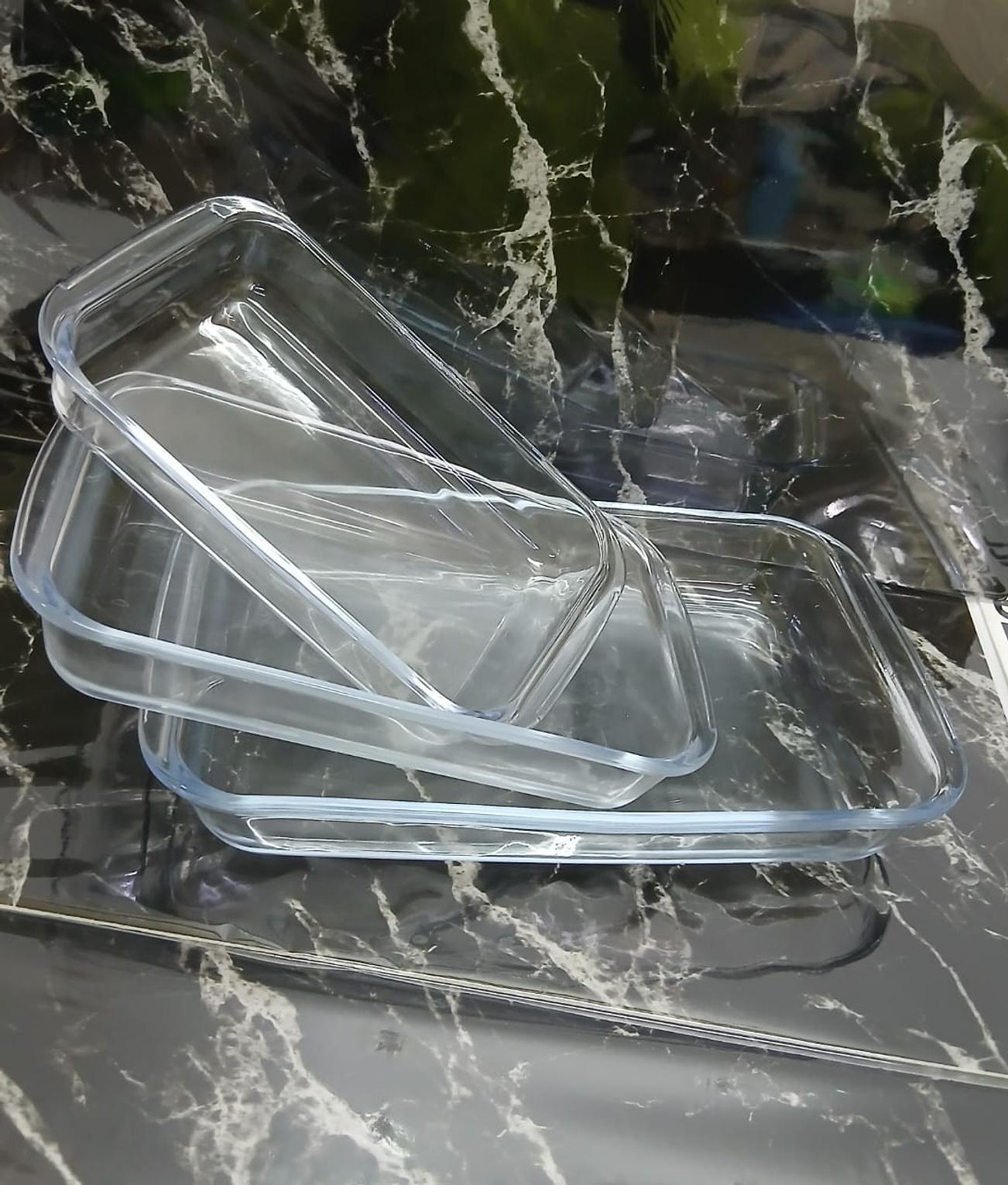 3 in 1 borosilicate Baking glass ware set now available Capacity 1 ltr 1.6 ltrs 2.2 ltrs