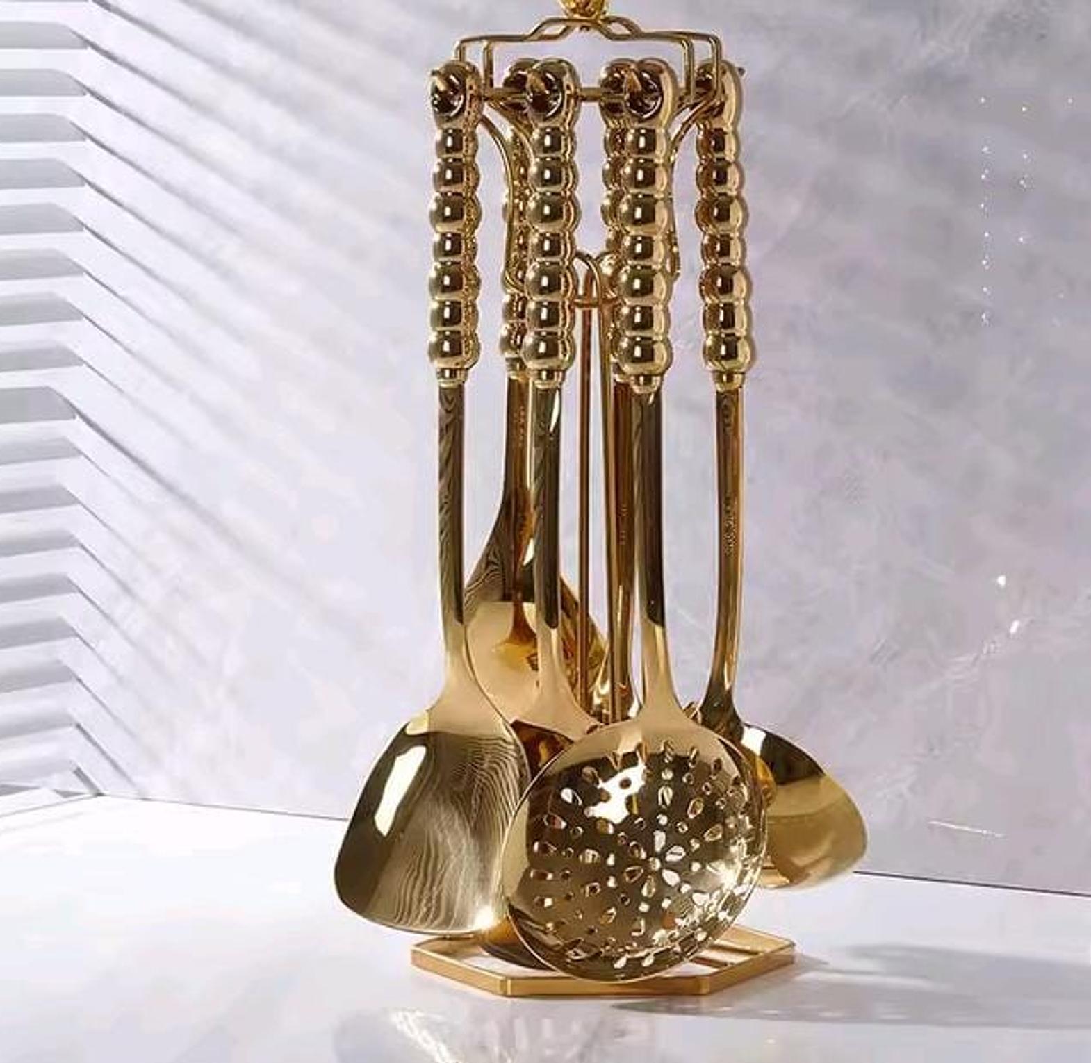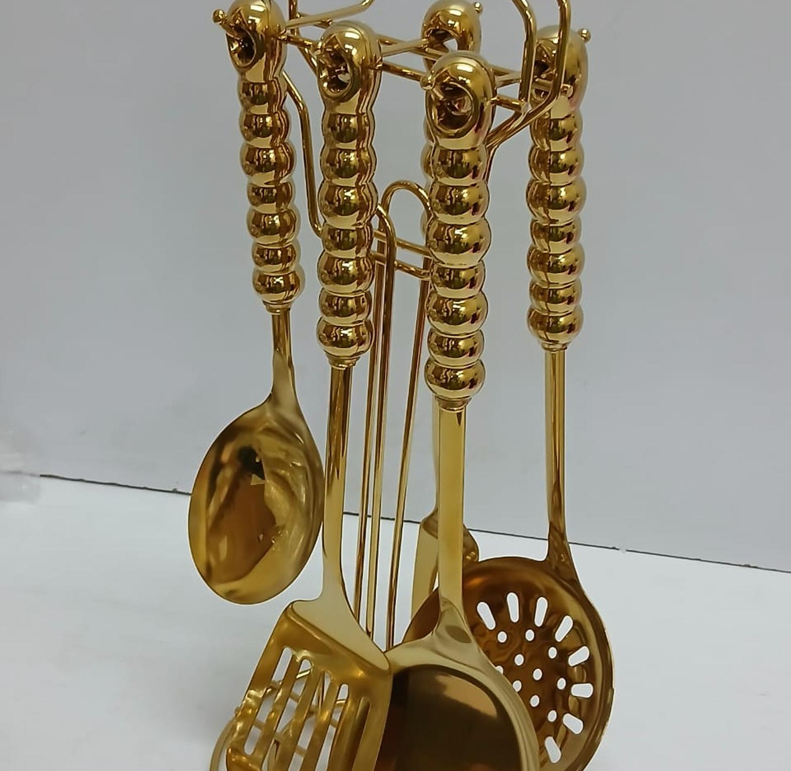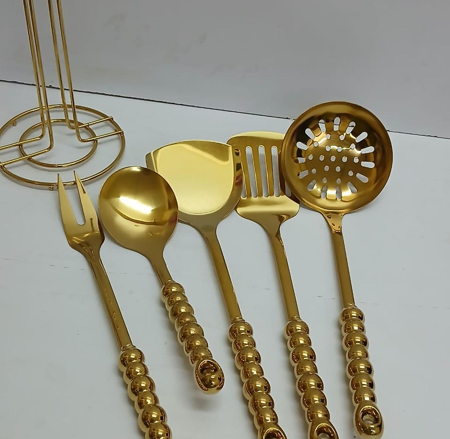 6 in 1 gold vanished serving spoon set with stand and ceramic handle now available Colours available ▪️Gold