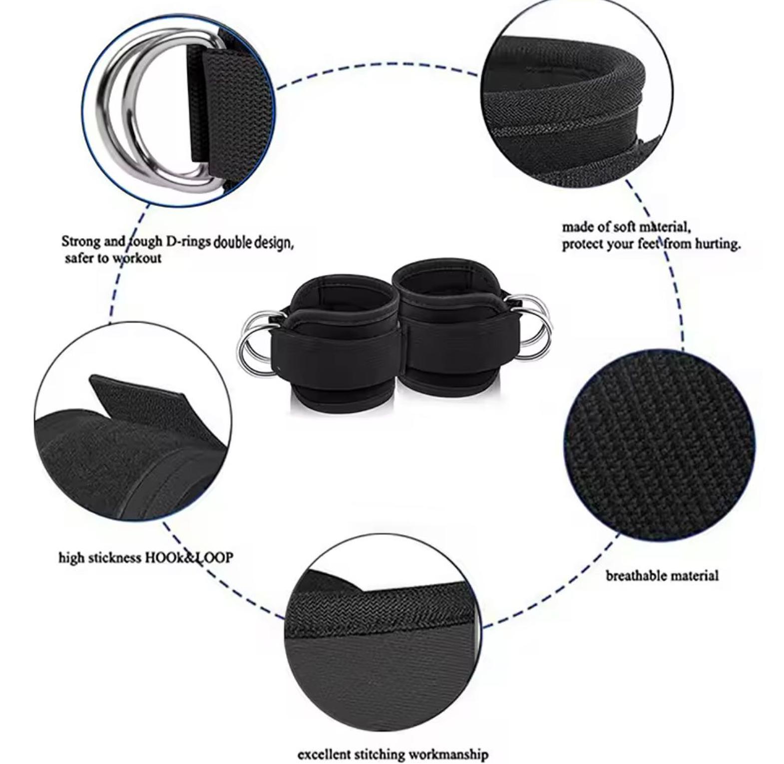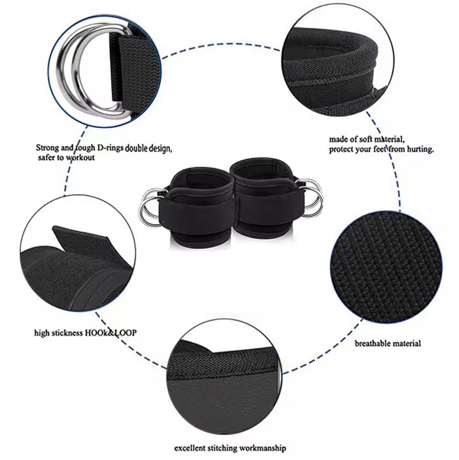 2PCS Ankle Straps for Cable Machines Kickbacks - Adjustable Comfort Ankle Cable Attachments for Gym Ankle Cuff Workout Men Women