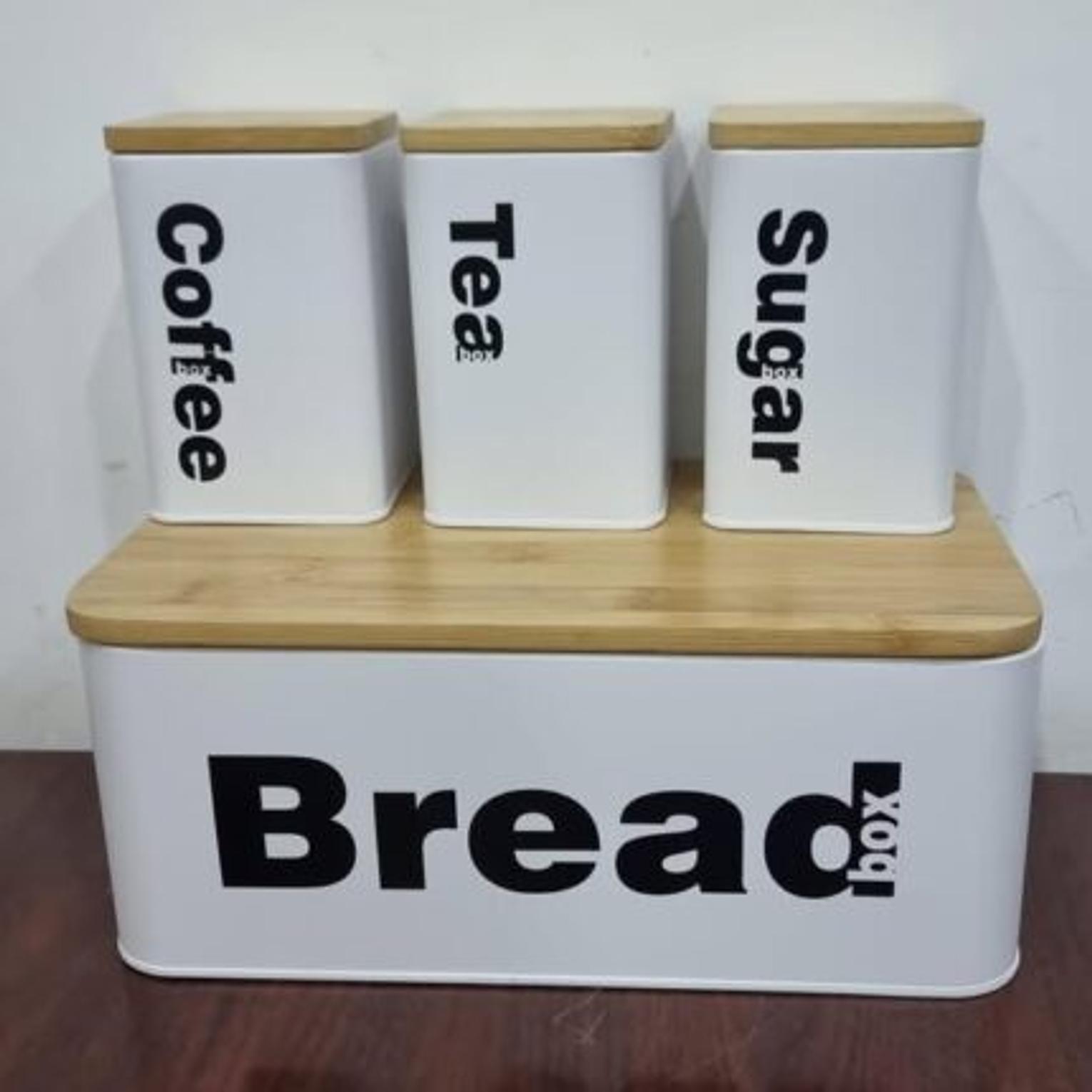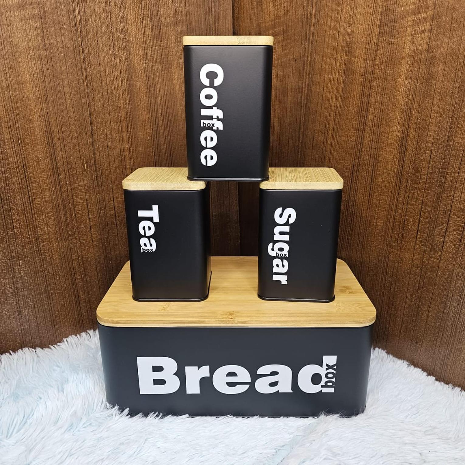 33x18x13cm bread bin plus 3x1300ml canisters with bamboo lids now available in Cream and black