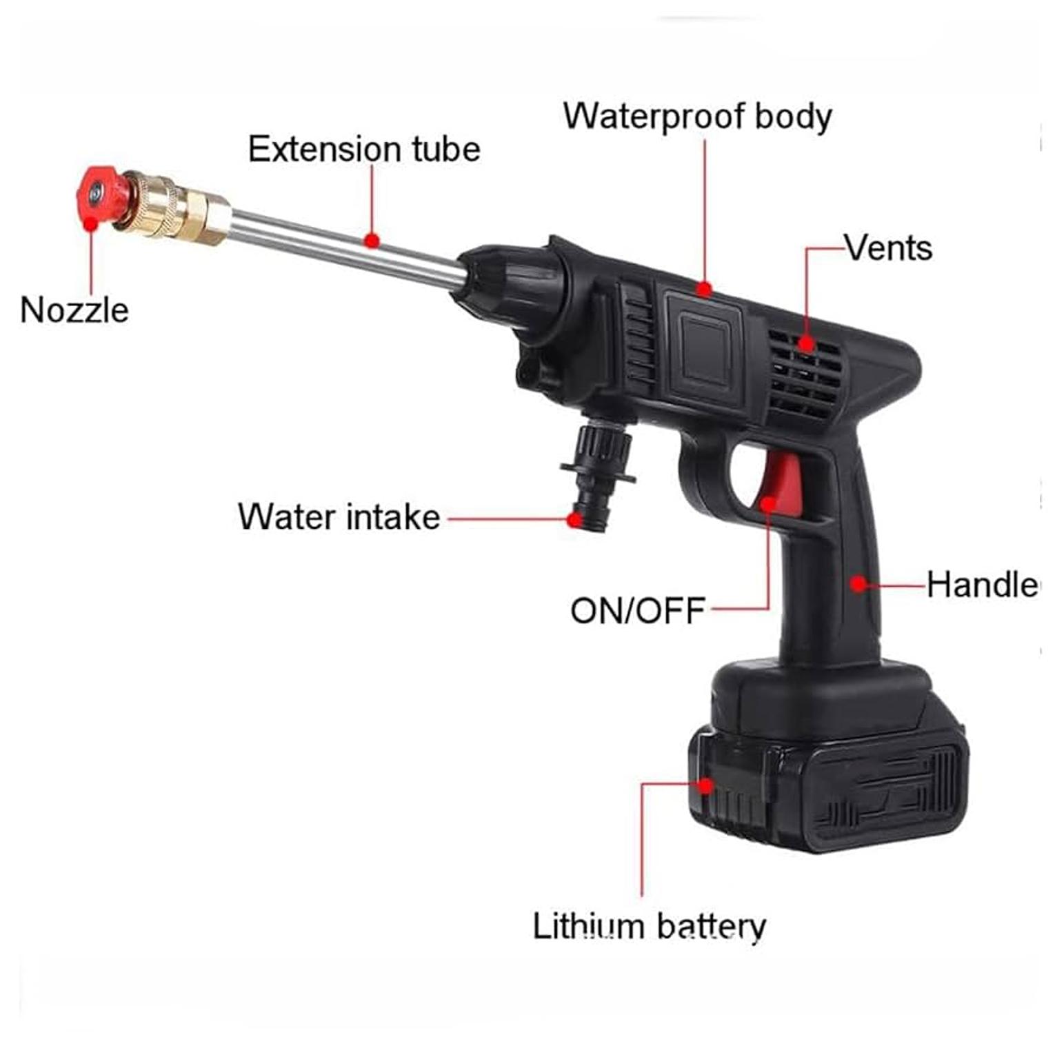 - Our cordless pressure washer is lightweight, wireless, easy to assemble, disassemble and carry. You can use it anytime, anywhere. No need to worry about water supply, because it can take water from taps, rivers, buckets and even water bottles. You can take it to the garden, vegetable garden or outdoors.
