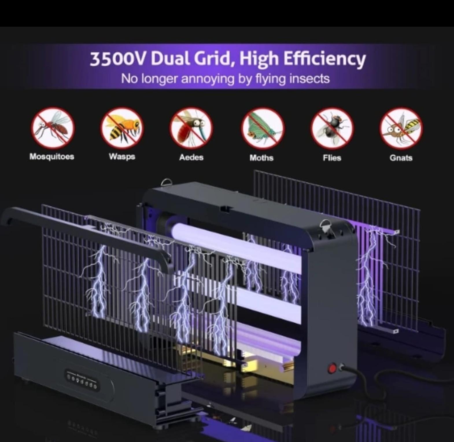 Mosquito light. ✴️Silent Guardian Mosquito-Free nights.. ✨ Kills Flying insects ie Mosquito/ Flies/ Moths/ wasps etc.. ✴️Double-layer 3500v + 500v Grid for faster elimination ❇️Safety first; Protective mesh prevents accidental contact ❇️Includes Remote (2h / 4h / 8h ) cleaning brush,chains and a pull-out Mosquito tray. 📍100% Chemical Free..[ Safer ]
