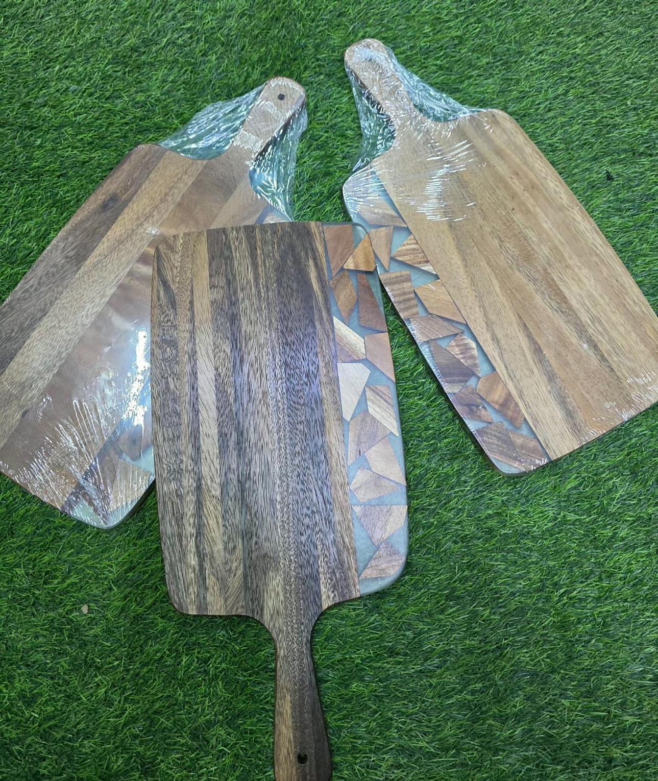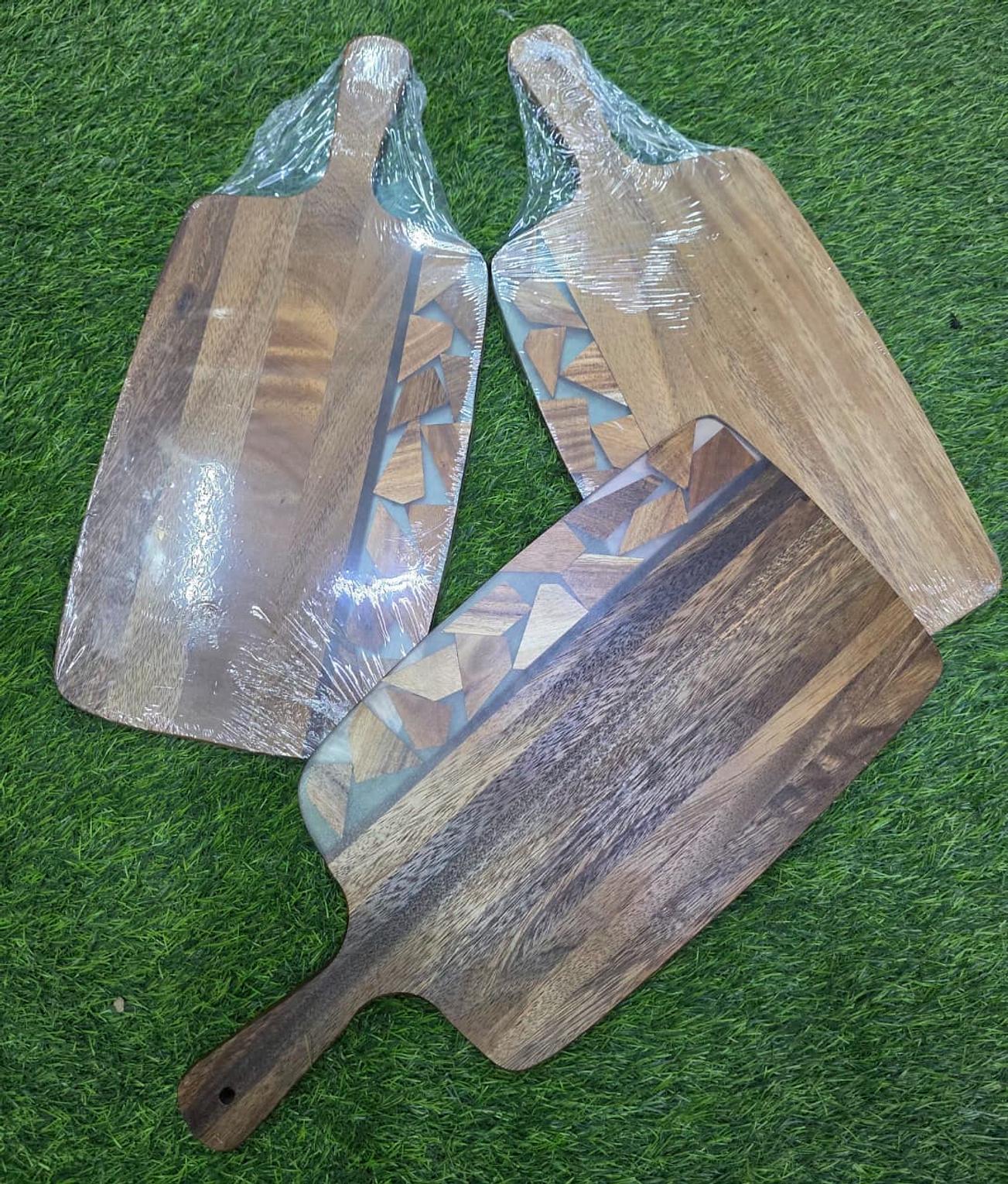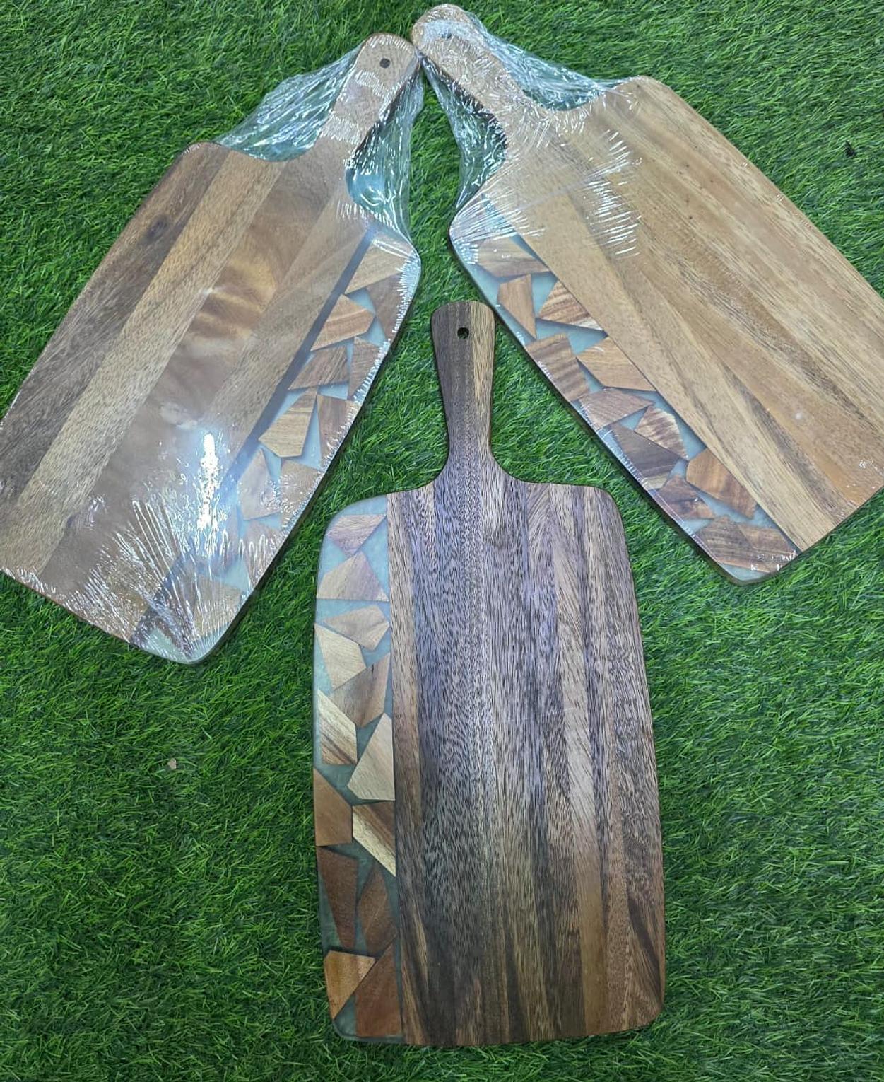 New Rectangular Acacia wood Cutting Board with Natural Custom Resin Stiching. ✴️Premium Quality heavy and Durable. ✴️Mulit-purpose cutting board / Tray serving board ie Cheese Meat/ Bread & Fruits ✴️Double side Cutting Board ❇️Size: 45cm*20.5cm*1.4cm
