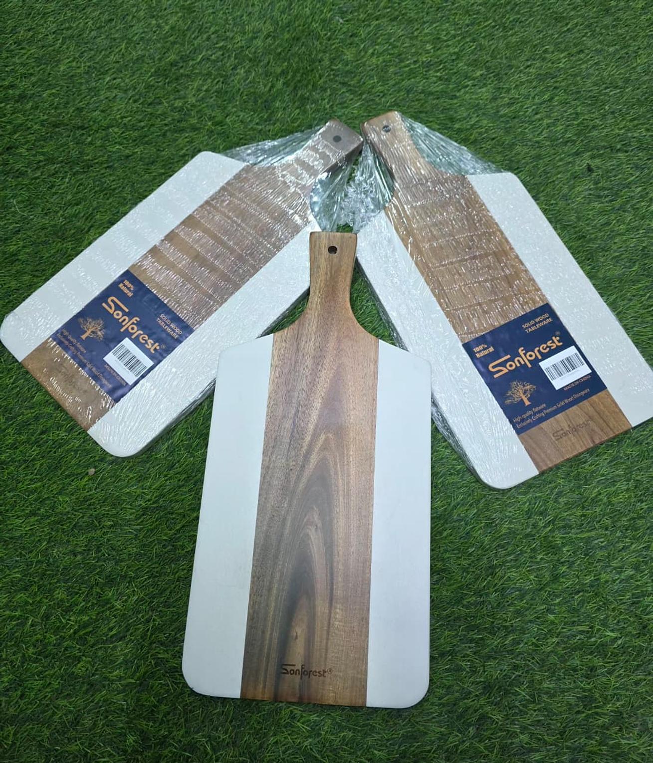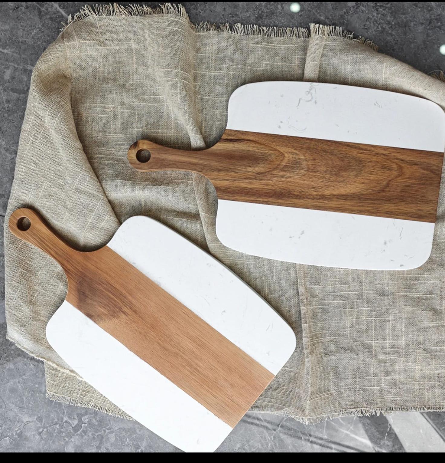 New Rectangular Acacia wood Cutting Board with Natural Marble Stiching. ✴️Premium Quality heavy and Durable. ✴️Mulit-purpose cutting board / Tray serving board ie Cheese Meat/ Bread & Fruits ✴️Double side Cutting Board ❇️Size: 42cm*20cm*1.3cm