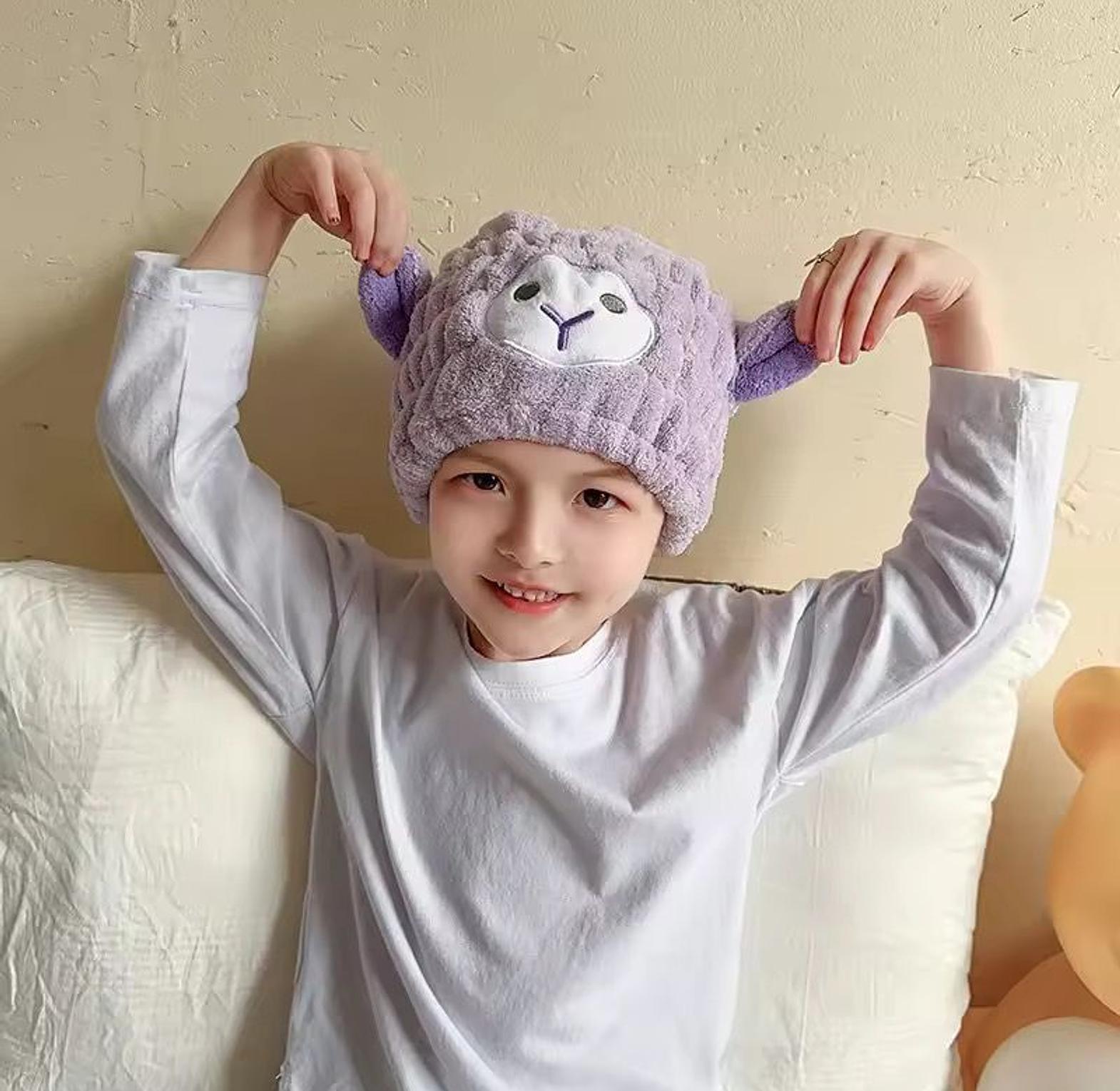 Sheep Microfiber Dry Hair Towel Cute Cartoon Women And Child After Shower Hair Drying Hat Absorption Turban Towels Bathing Tools. Worn both by kids and adults