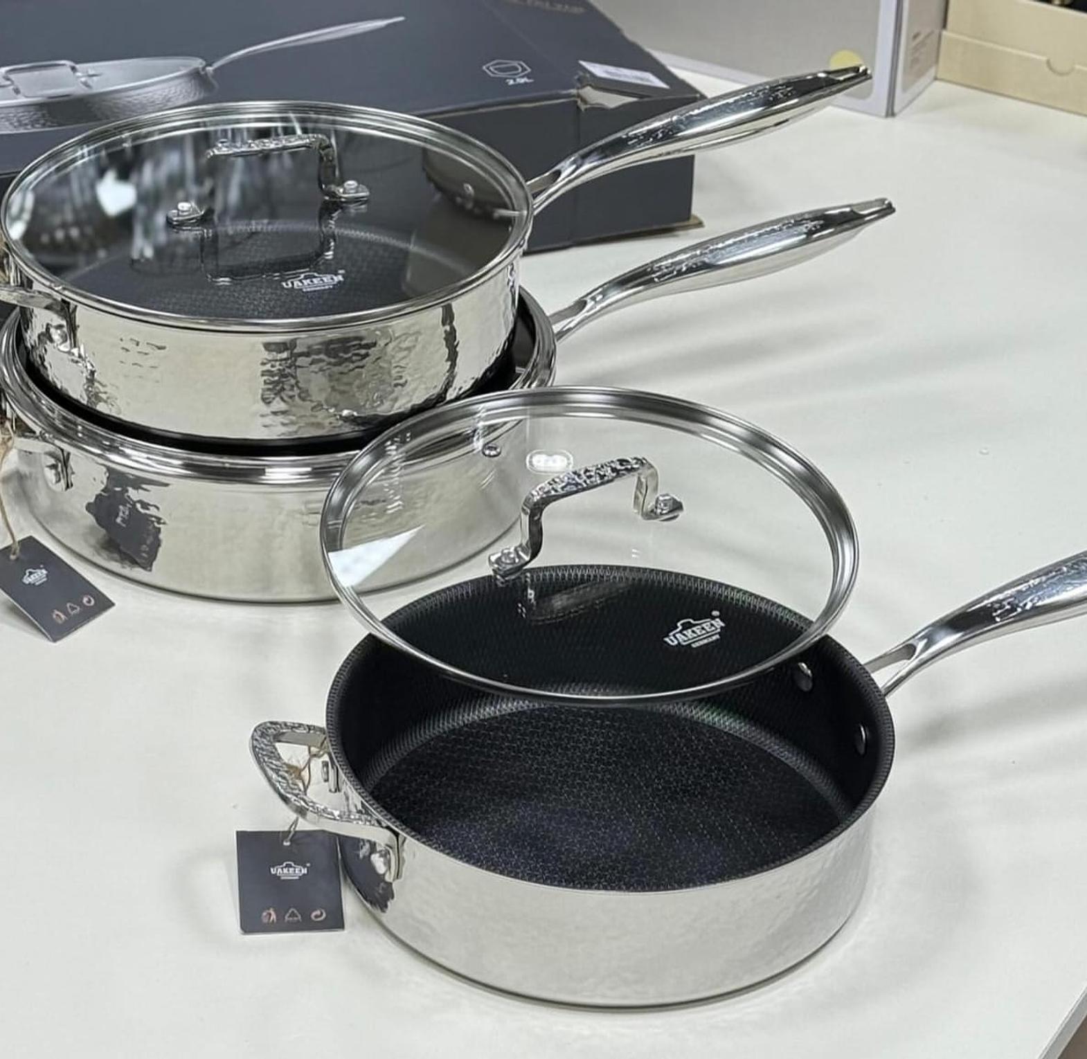 Premium Quality ✴️Tripply S/S Stainless Cookware ✴️Stainless Non-stick Pan with Lids ✅HoneyComb Coating Design; Scratch and water Resistance 🔥Induction & Compatible with All Stoves. ❇️Deep Frying Pan