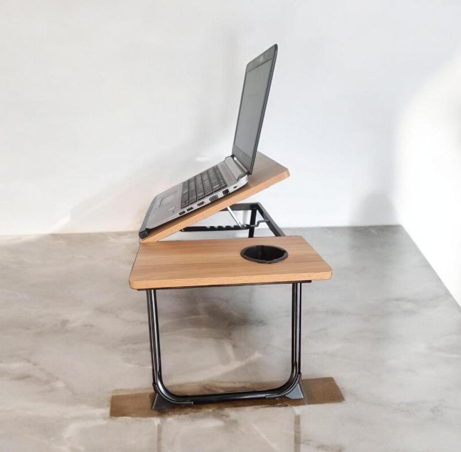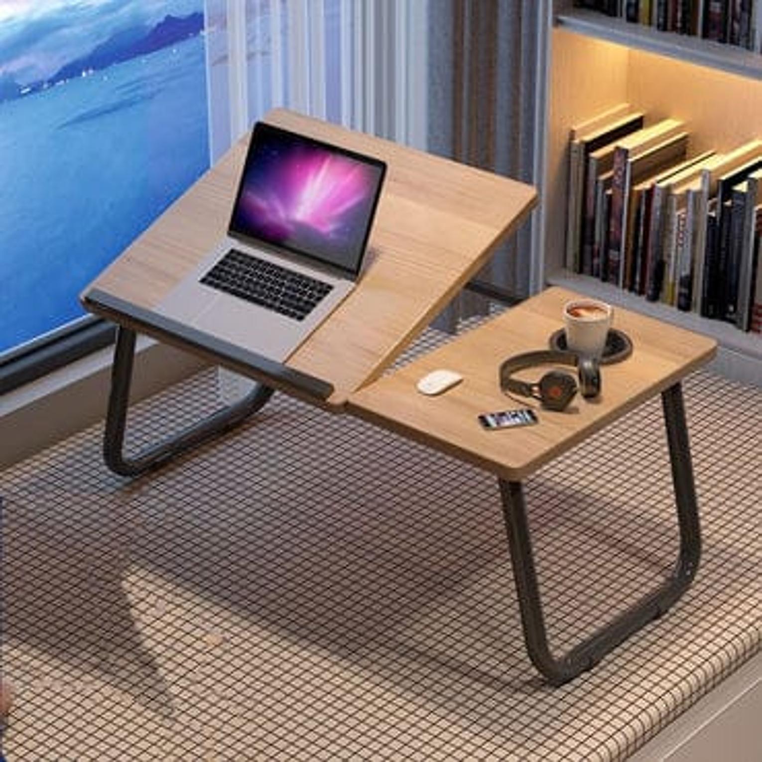 Wooden profile 5 levels Adjustable angle foldable study table or laptop table with cup slot